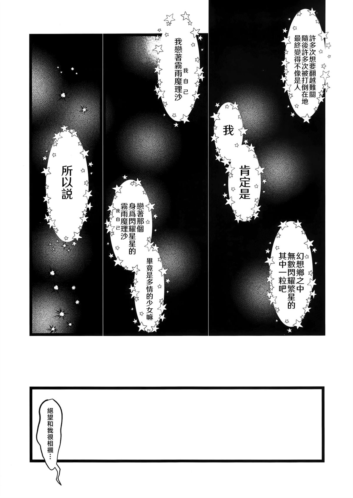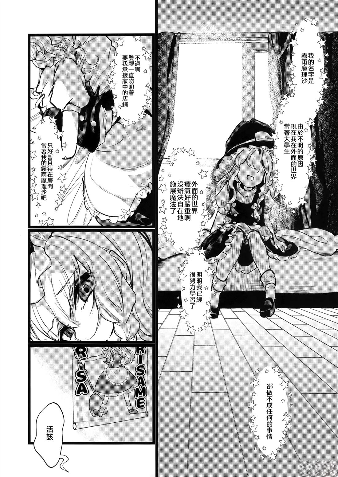 凋叶棕「STAR FOLLOWER」的三次创作。深信自己是雾雨魔理沙的普通女性的漫画。