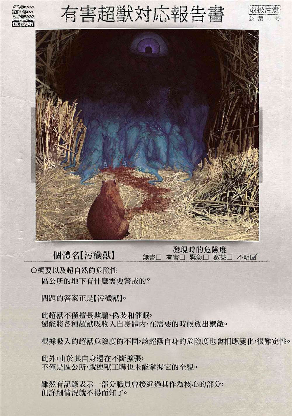 当它最始出现的时候,大家都以为是雾,直到它冲向居民区,将其夷为平地后又消散而去。随之各种各样的迷之生物始出现,人们将它们命名为“有害超兽”。。。