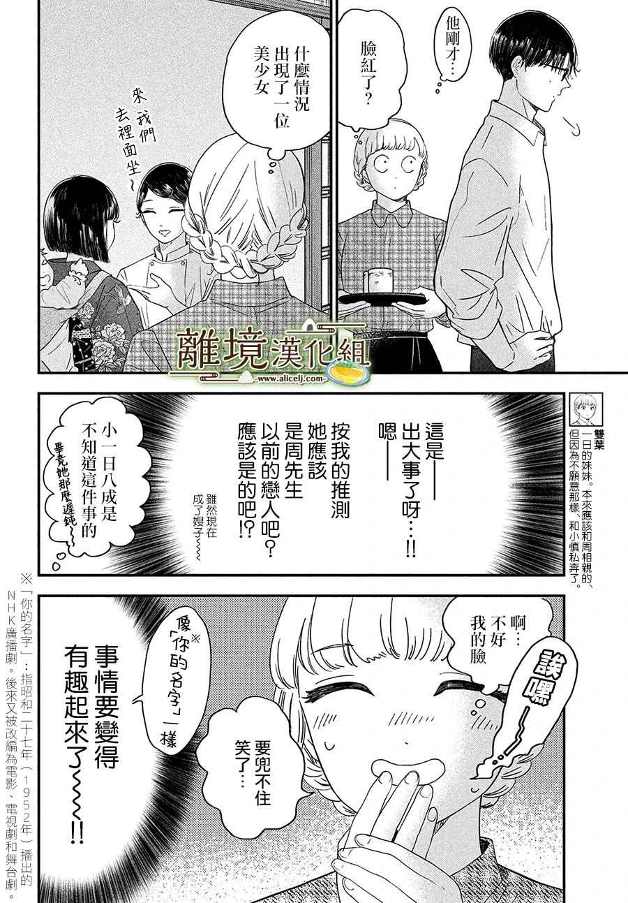 不满意家族相亲的妹妹不顾一切的私奔,换来的是守寡的姐姐替妹代嫁,对象还是有著15岁之差的无口傲娇男,温柔独立的厨刀娘能否收服一本正经爱毒舌的小青椒呢?一段昭和时代的京都料理(爱情?)之旅即将……