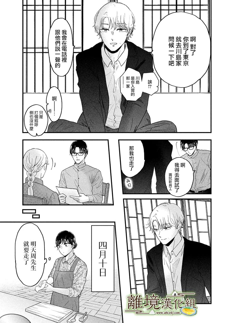 日式奇幻爱情系列《山神大人与他的意中人》。与在山中一位拥有浮空能力的远离尘世之人相遇的中村。随著深入交流,对方委托他修理自己的怀表之后,当他前往山上找对方汇报已经找到店家可以帮忙修理的时候,对方却突然消失了…………?