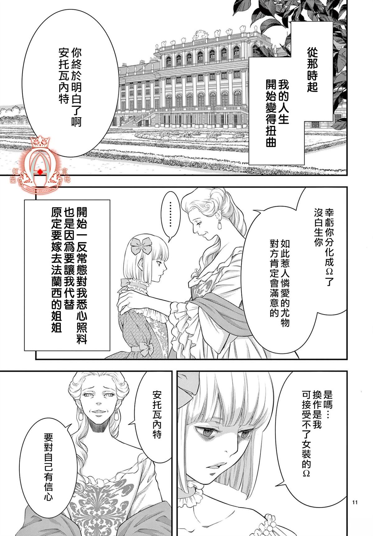君临法兰西的顶点,被称为「愚钝的α」,不符合众望的国王——路易16世。邻国联姻而来,被民间奚落为「淫乱的Ω」的王妃——玛丽·安托瓦内特。以及,憎恨王室的某位「少女」…。互相渴求,互相憎恨,互相欺瞒…暗流涌动的王宫之中,革命风暴正席卷而来——!