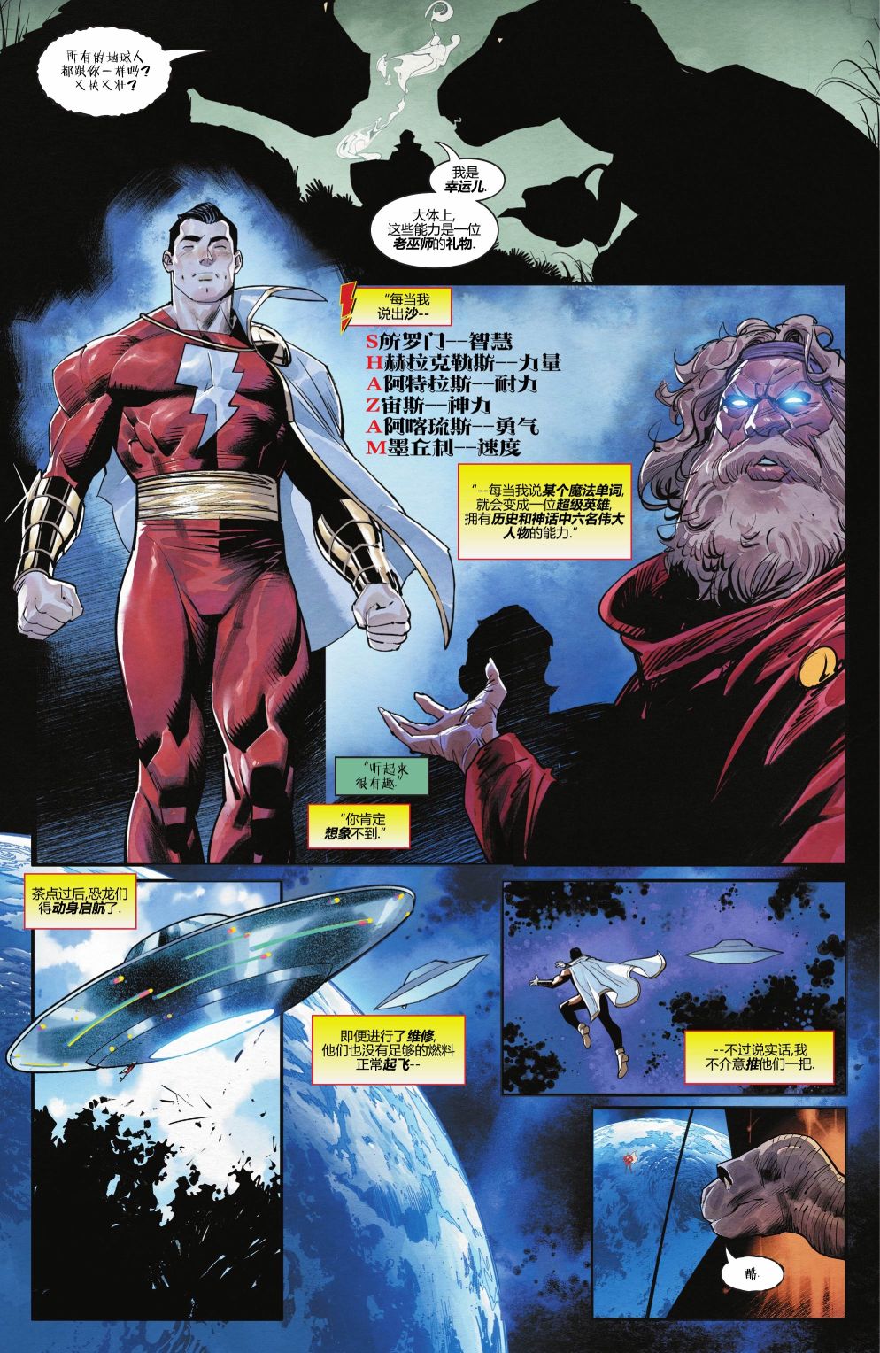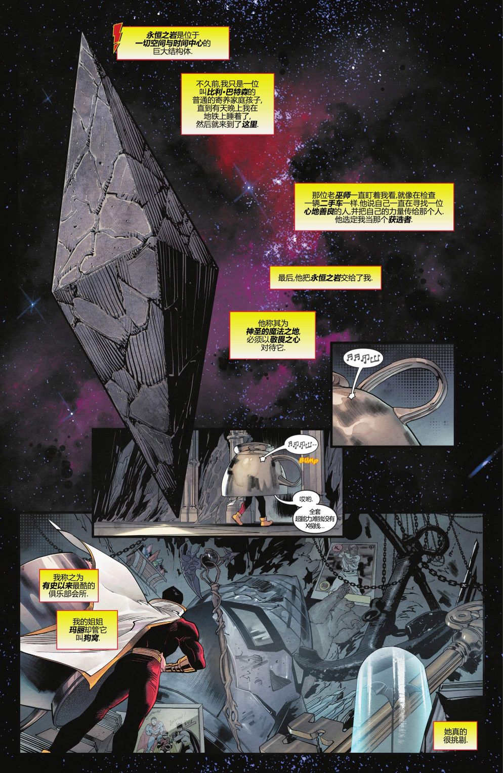 队长驾到!世界最佳创作者为您带来世界最强凡人!深受粉丝喜爱的马克·韦德和丹·莫拉(蝠超世佳拍)将向您呈现比利的神奇冒险! 太空恐龙!永恒之岩俱乐部!要你命的虫子和会说话的老虎!原子机器人,外星世界,疯狂科学家,邪恶诅咒,以及来自DC宇宙的恶棍——欢迎来到比利·巴特森的冒险之旅!他和他的红色化身将保护[]护地球免受最荒诞最疯狂的威胁!只需一个魔法单词…沙赞!![-折叠]