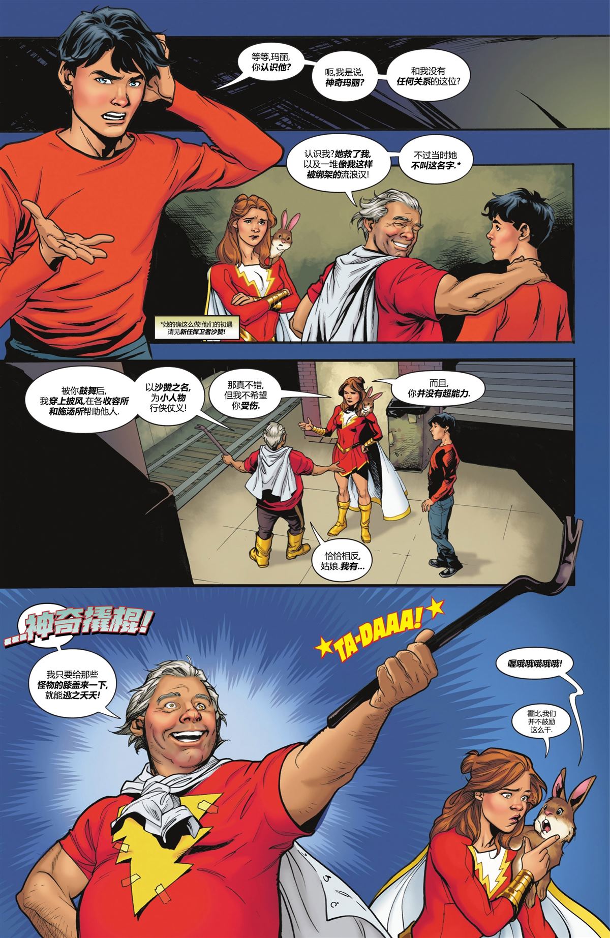 队长驾到!世界最佳创作者为您带来世界最强凡人!深受粉丝喜爱的马克·韦德和丹·莫拉(蝠超世佳拍)将向您呈现比利的神奇冒险! 太空恐龙!永恒之岩俱乐部!要你命的虫子和会说话的老虎!原子机器人,外星世界,疯狂科学家,邪恶诅咒,以及来自DC宇宙的恶棍——欢迎来到比利·巴特森的冒险之旅!他和他的红色化身将保护[]护地球免受最荒诞最疯狂的威胁!只需一个魔法单词…沙赞!![-折叠]