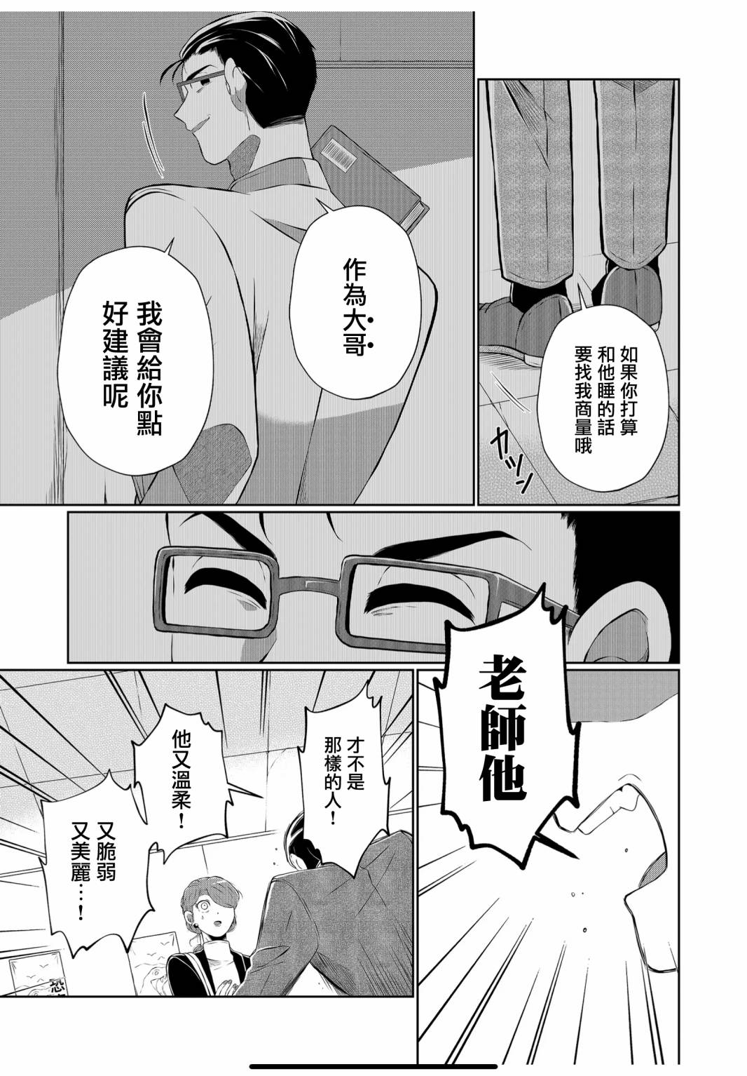 经营中小型企业的王总时常南北奔波谈生意,于是透过车队的长期租车服务包下小林的计程车。虽然已经同行好一阵子,小林在王总面前却始终战战兢兢小心翼翼,天冷时注意帮他保暖,听见肚子叫时立刻觅食投喂(?)。直到有一次出差,小林因饭店作业疏失而没订到房间,正不知如何是好时却听见王总淡定的声音──「不然就一起睡吧[]吧~」「……!!!??」憨直青年与天然大叔的暖心暖胃暖床(??)之旅,正式启程[-折叠]