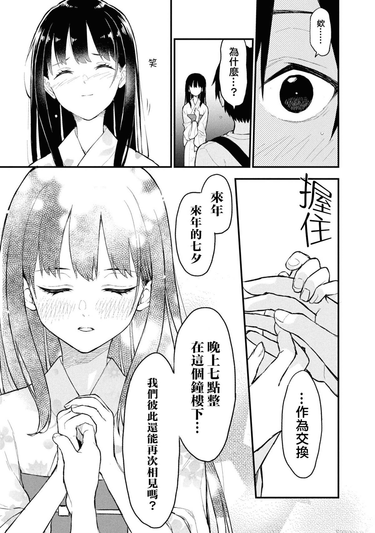 日渐感到生活空虚的高一生·亮,他在上学的电车上总是会看到一个美丽的女孩,内心为之动容,却从未采取任何行动。然而,在被好友畠山邀请参加七夕祭的会场时,他遇到了那个有些神秘的少女——时子,从那一刻起,他感觉自己的人生始发生了变化…… ……两年后,他甚至不知道自己即将死去。 这是一个关于青春期的伤痛[]痛与愿望交织在一起的复杂故事,一段难以简单概括的七夕版“男孩遇到女孩”&××××[-折叠]