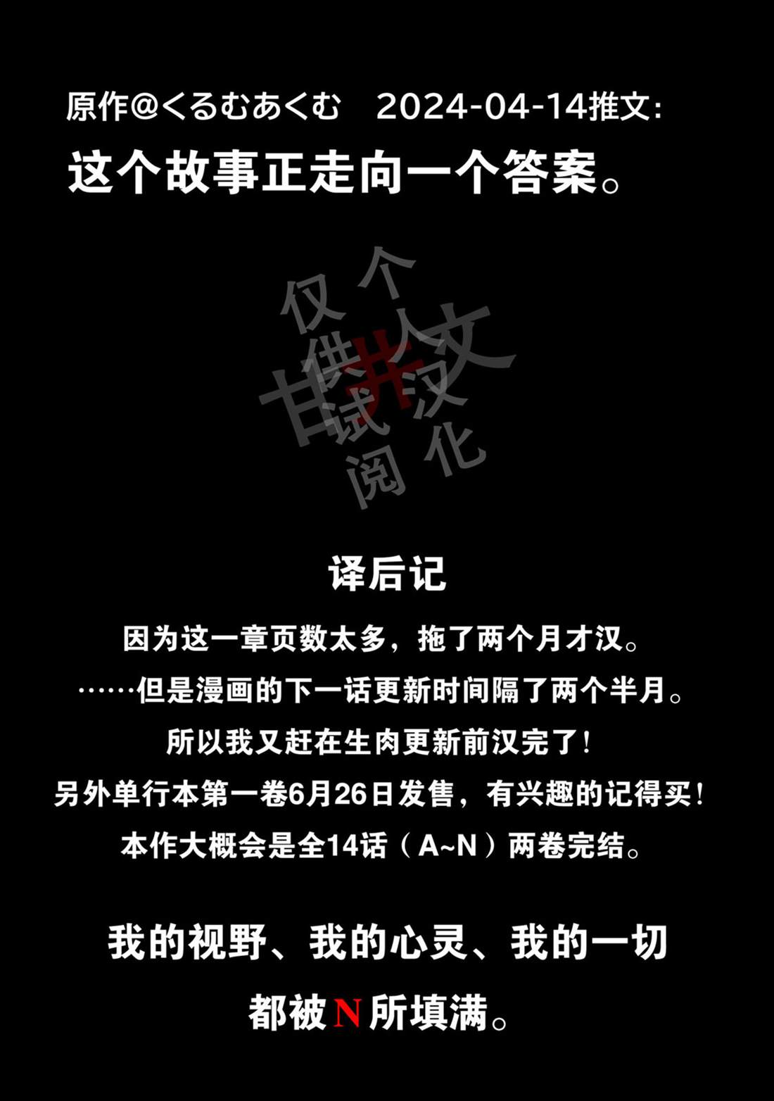 我的视野、我的心灵、我的一切——都被N所填满。