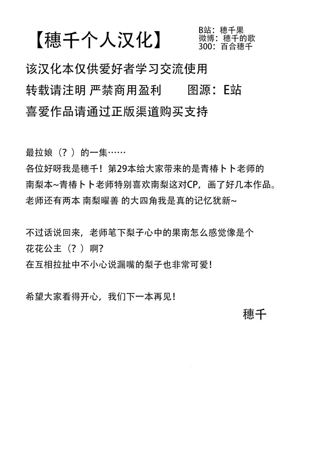 青椿トト老师的南梨同人本~