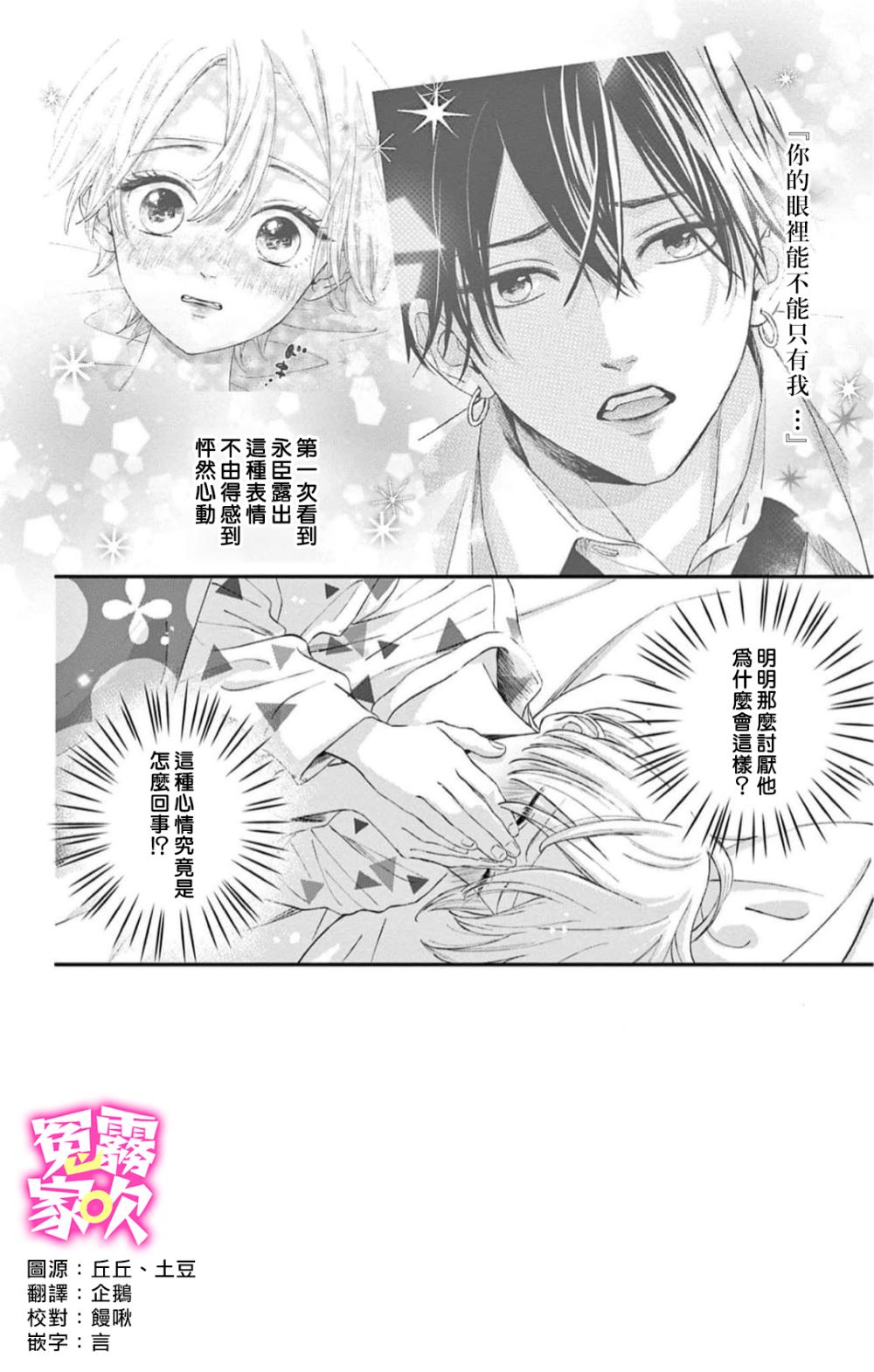 梦到与之恋爱,与之共坠爱河的人,是一直在一起的发小。 笨拙的人×天然 出生时始做什么都一起的发小,晃和春人因为升入大学,所以同居了。 他们逃离了什么都没有的乡下,充分享受了大城市,但因为突然出现的男人亲切地喊春人为「春」,让晃人脑袋中一片混乱——。 他对无法放下的发小萌生出占有欲。 有人[]人曾说过「恋爱是闪烁发亮的」[-折叠]