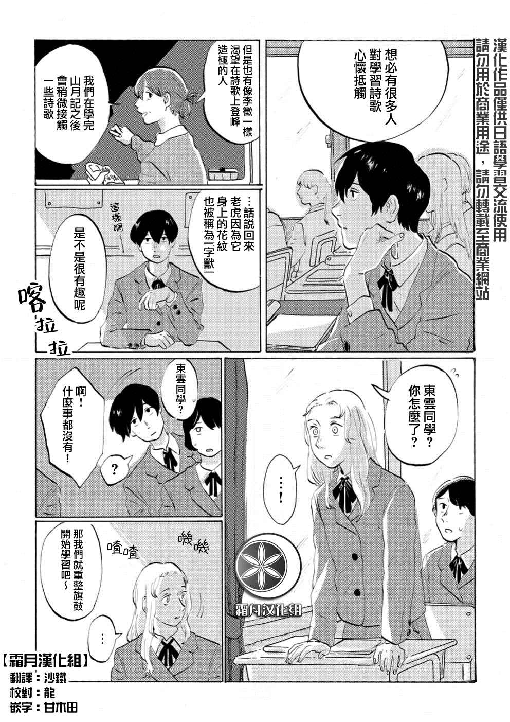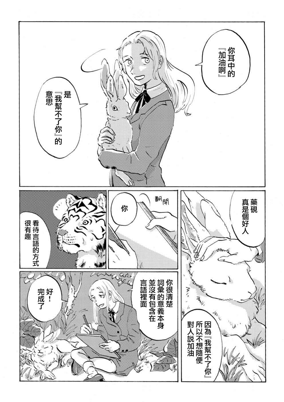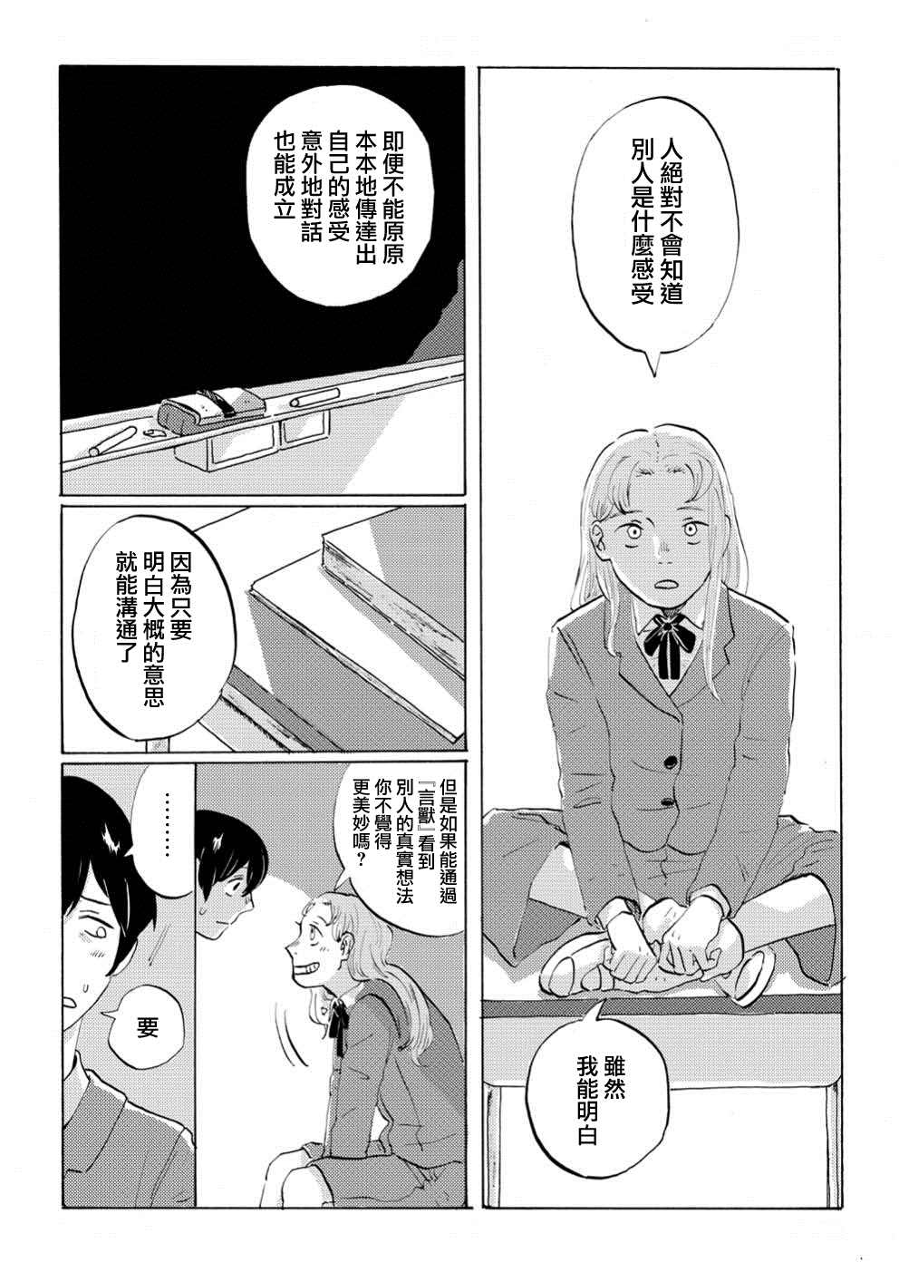 在天生拥有联觉能力的东云眼里,他人说出的话语是“野兽”的形状。她能够从这些“言兽”中汲取言语的真意。而她的同班同学“药砚”喜欢语言,对诗歌有著强烈的兴趣,却又无法坦率面对此事。因某个小小的契机,两人决定齐心协力,一同达成东云的目的。
