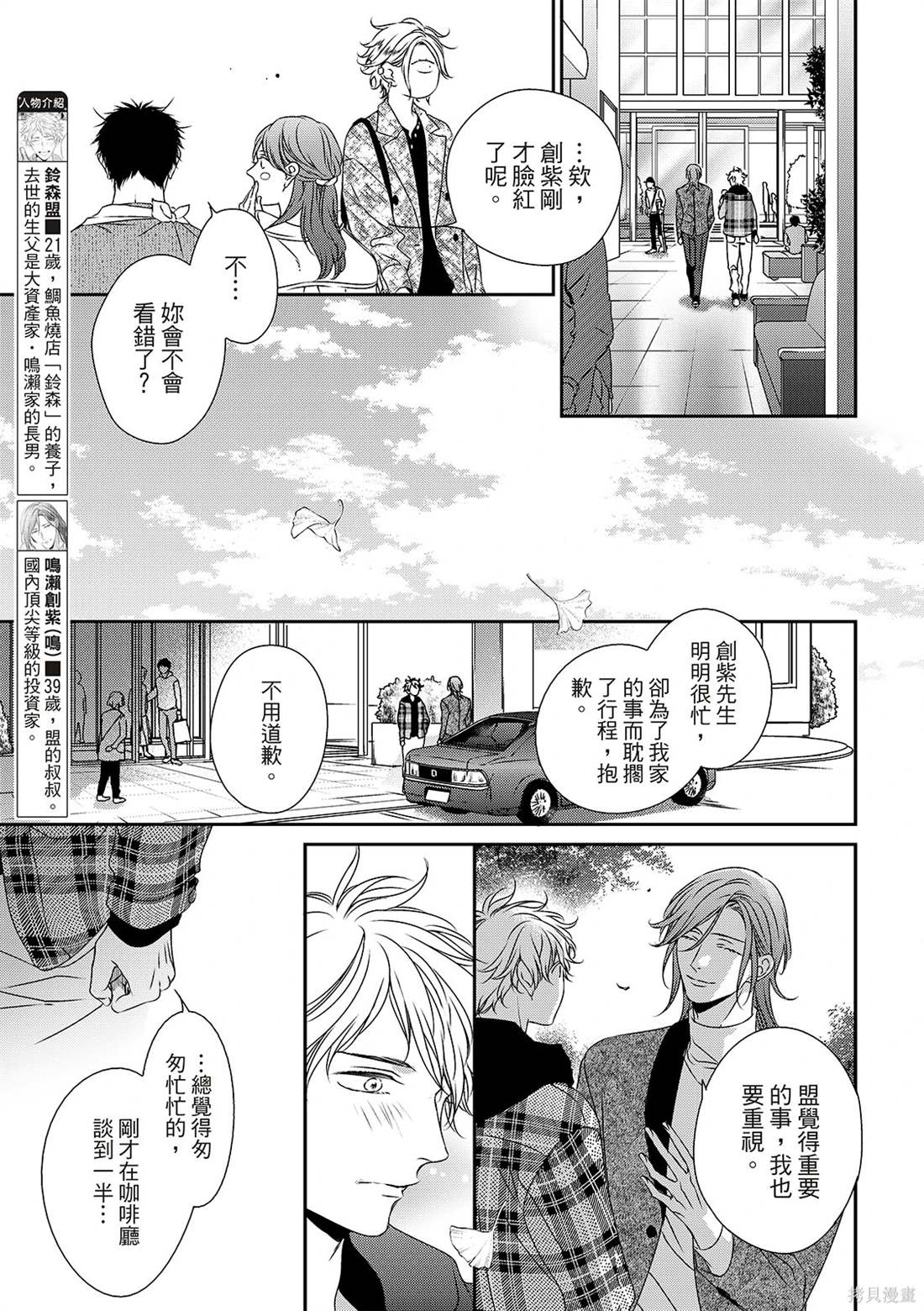 盟是鲷鱼烧店“铃森”老板的独生子,每年七夕是家里生意最忙的时候,因为独家的鲷鱼烧口味深受顾客们的喜爱。但是其实对盟来说,七夕是个可以见到喜欢之人的日子。鸣是一年一度会来买独家口味鲷鱼烧的客人之一,一始盟对鸣只是一种憧憬,但在高中的时候盟知道了鸣有恋人,此时才明白憧憬渐渐变成了爱恋,而且是不能说出口[]口没有结果的爱恋。这样的状态持续了六年,不想再这么不明不白地过日子的盟,决定要向鸣告白了[-折叠]