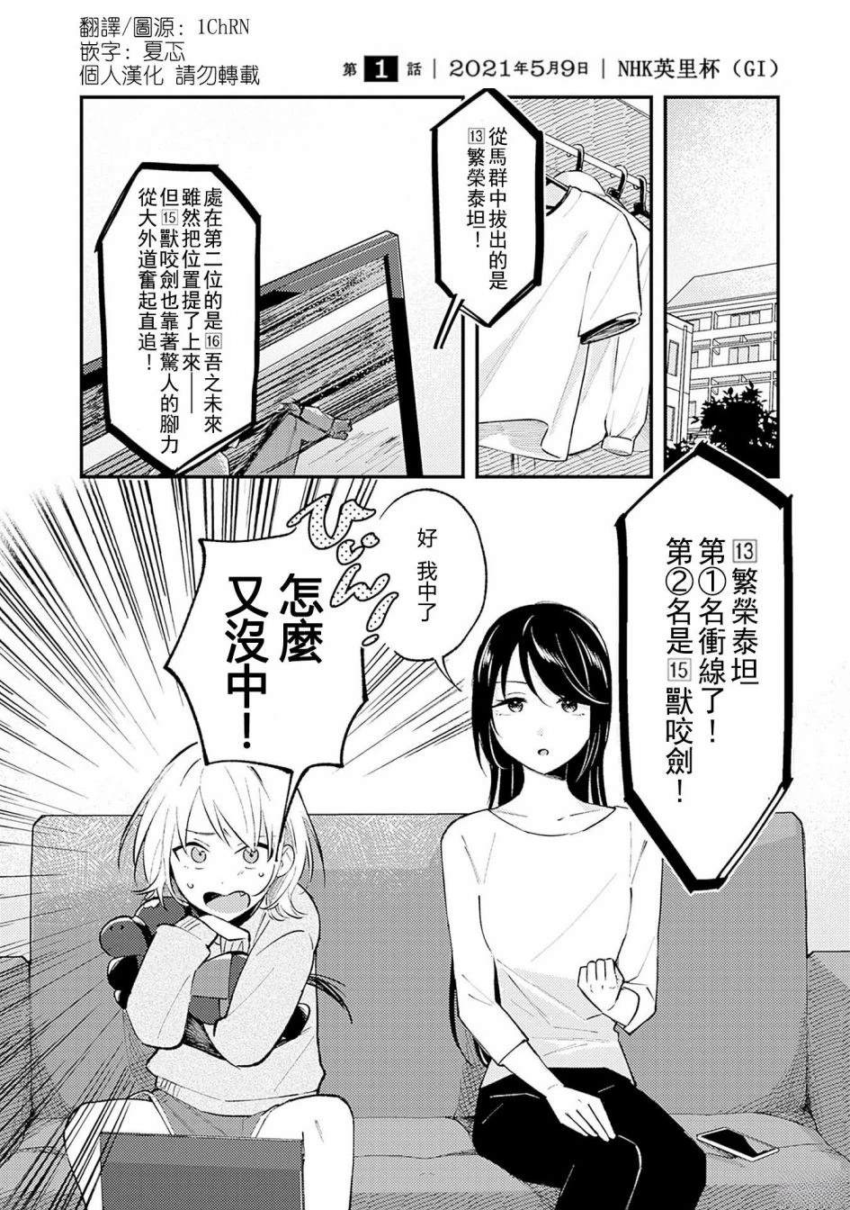 只要和你一起,就会更喜欢赛马。只要和你一起,那份「喜欢」就会不断增加。性格正相反的两名女子大学生 爱和惠那。那样的两人共同的爱好是――赛马!一天,8万日元的租金折半的话……那份余下的钱就能够用在赛马上!由爱的这份提案二人始了合租的同居生活。只有赛马是共通项的二人,在共同生活中,逐渐变得了解对方,「[]「将那份喜爱共同分享」的二人会成为彼此无法替代的存在吗…赛马×同居的girls' life,始了――![-折叠]