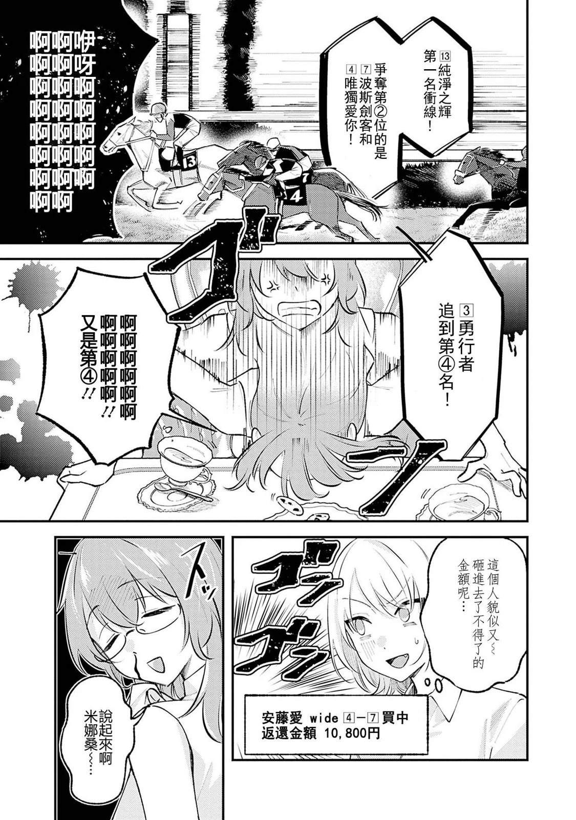 只要和你一起,就会更喜欢赛马。只要和你一起,那份「喜欢」就会不断增加。性格正相反的两名女子大学生 爱和惠那。那样的两人共同的爱好是――赛马!一天,8万日元的租金折半的话……那份余下的钱就能够用在赛马上!由爱的这份提案二人始了合租的同居生活。只有赛马是共通项的二人,在共同生活中,逐渐变得了解对方,「[]「将那份喜爱共同分享」的二人会成为彼此无法替代的存在吗…赛马×同居的girls' life,始了――![-折叠]