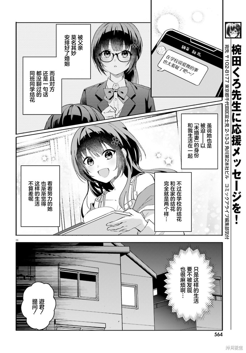 我是高中生佐方游一,因为父母之间的约定而和未婚妻同居。 对方竟然是同班朴素的同学?棉苗结花。 但是,竟然因为推荐的偶像游戏的话题而意气相投! 而且在家里可以说“游君……”“去洗澡吧?” 两个人甜蜜的新生活,只有可爱!?
