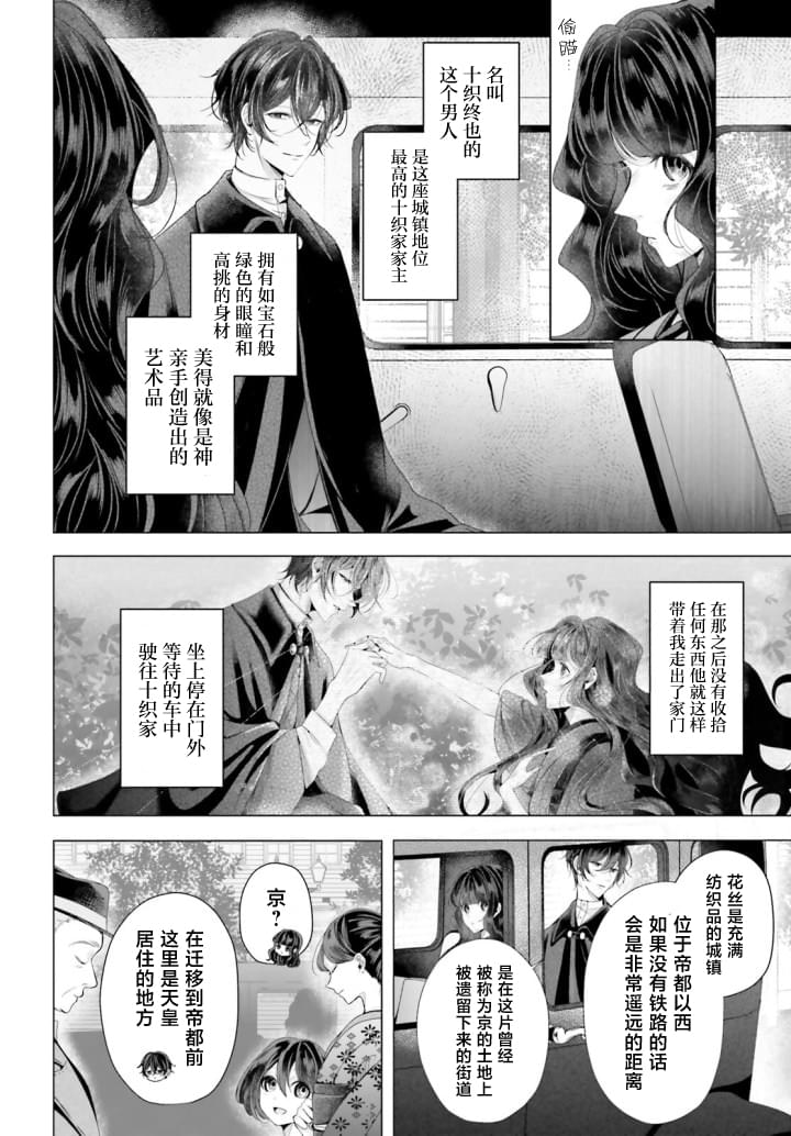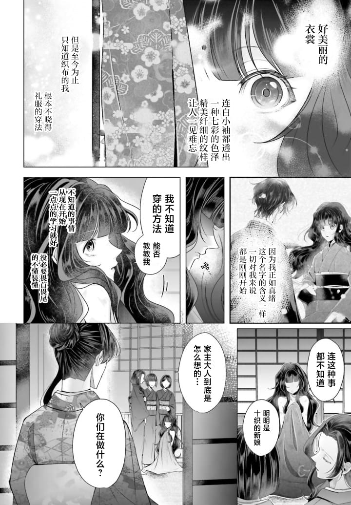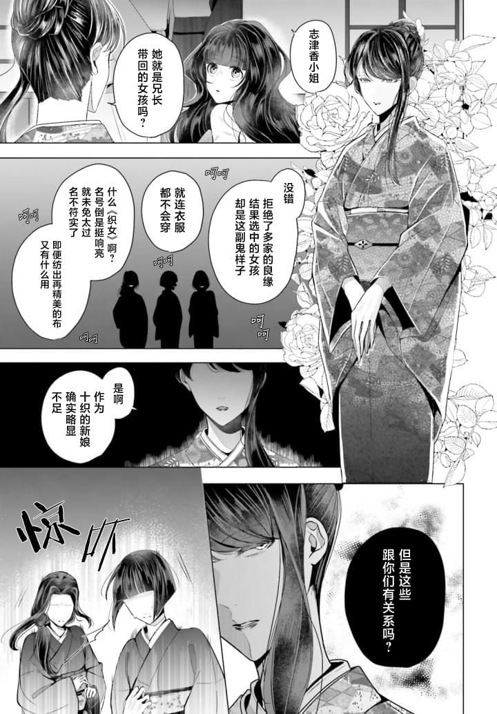「我来迎接你了、我的织女小姐。你愿意跟我结婚吗?」 被祖父母?叔母所疏离、幽禁在小屋中不停织布的少女、某天却受到镇子的领主?十织终也的突然求婚。十织家乃是继承神之血脉的名家世家、身为家主的终也不知为何、却被家人和周围人所忌讳、惧怕――
