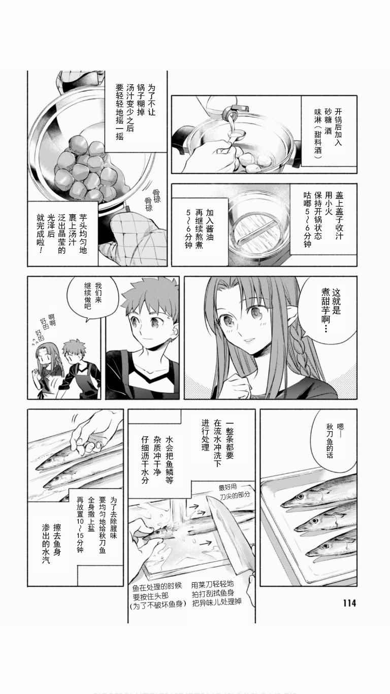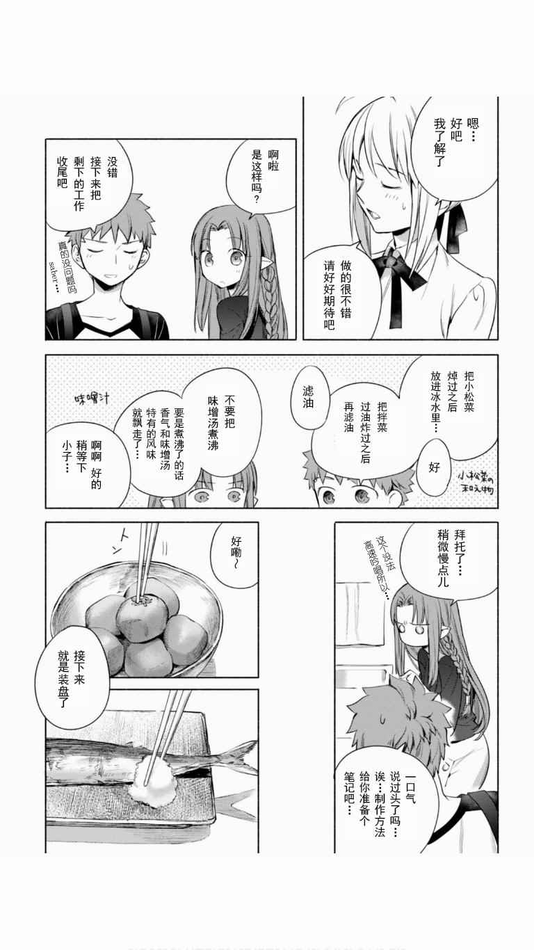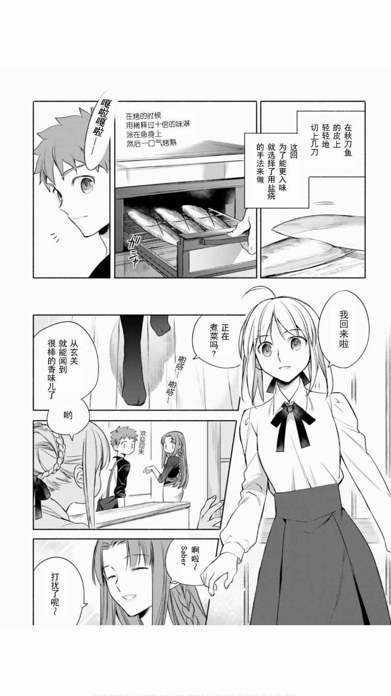 卫宫家今天的饭漫画 ,《卫宫家今天的饭》是根据原作游戏与动画为题材创作的美食漫,卫宫士郎每天忙著给SABER、间桐樱等女生做饭。第一话中的好媳妇卫宫士郎顶著大雪天在街上买食材准备晚上打火锅,毕竟这是圣杯战争的重要一环。卫宫士郎在众人面前示了整个做菜过程,非常详细,对厨艺有兴趣的同学可以跟著做成现实[]实版[-折叠]