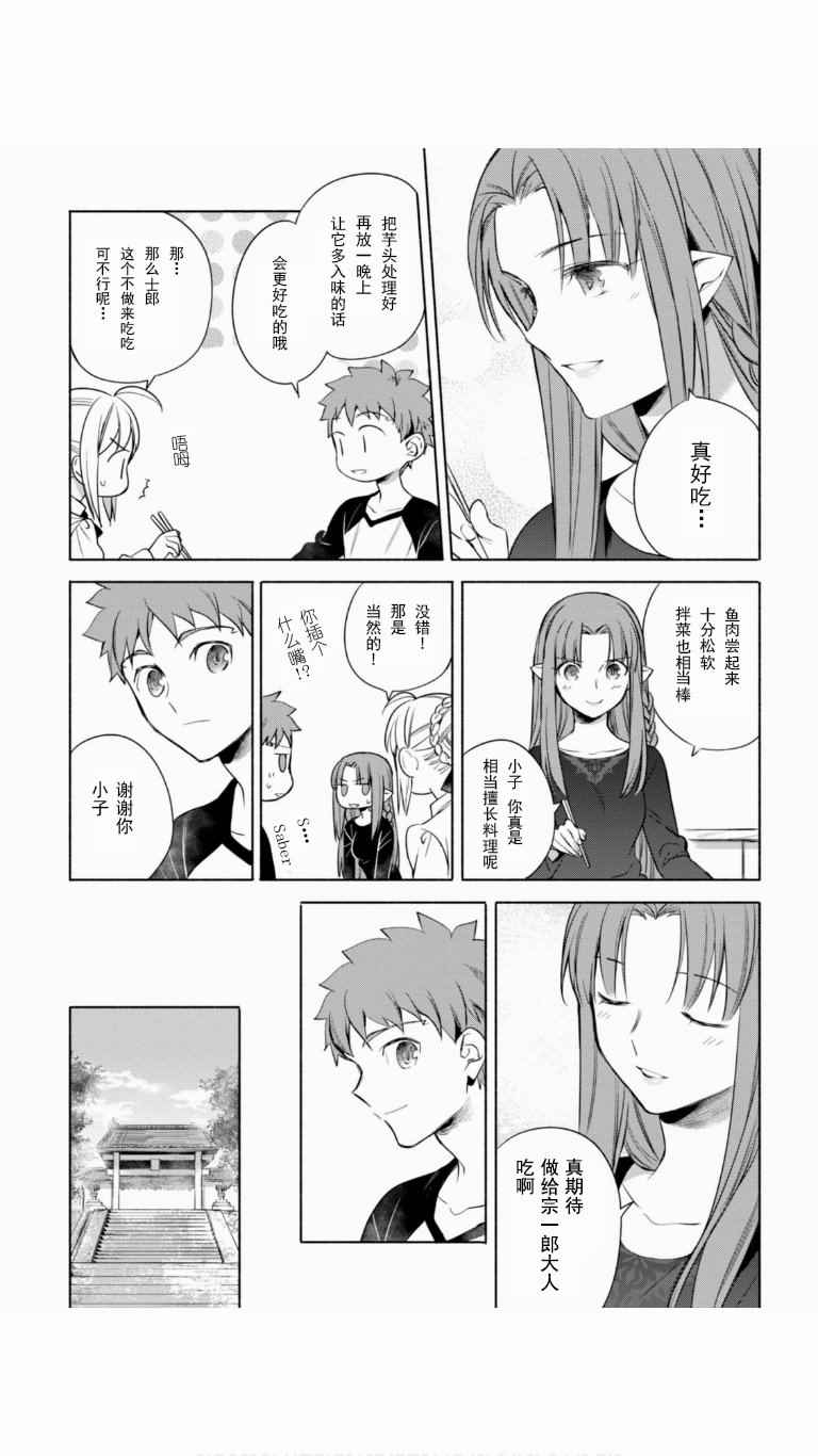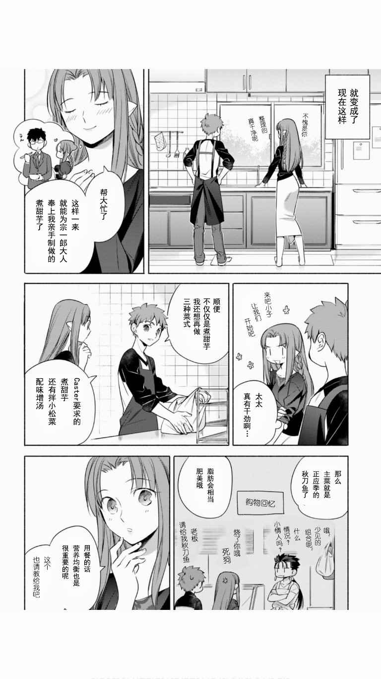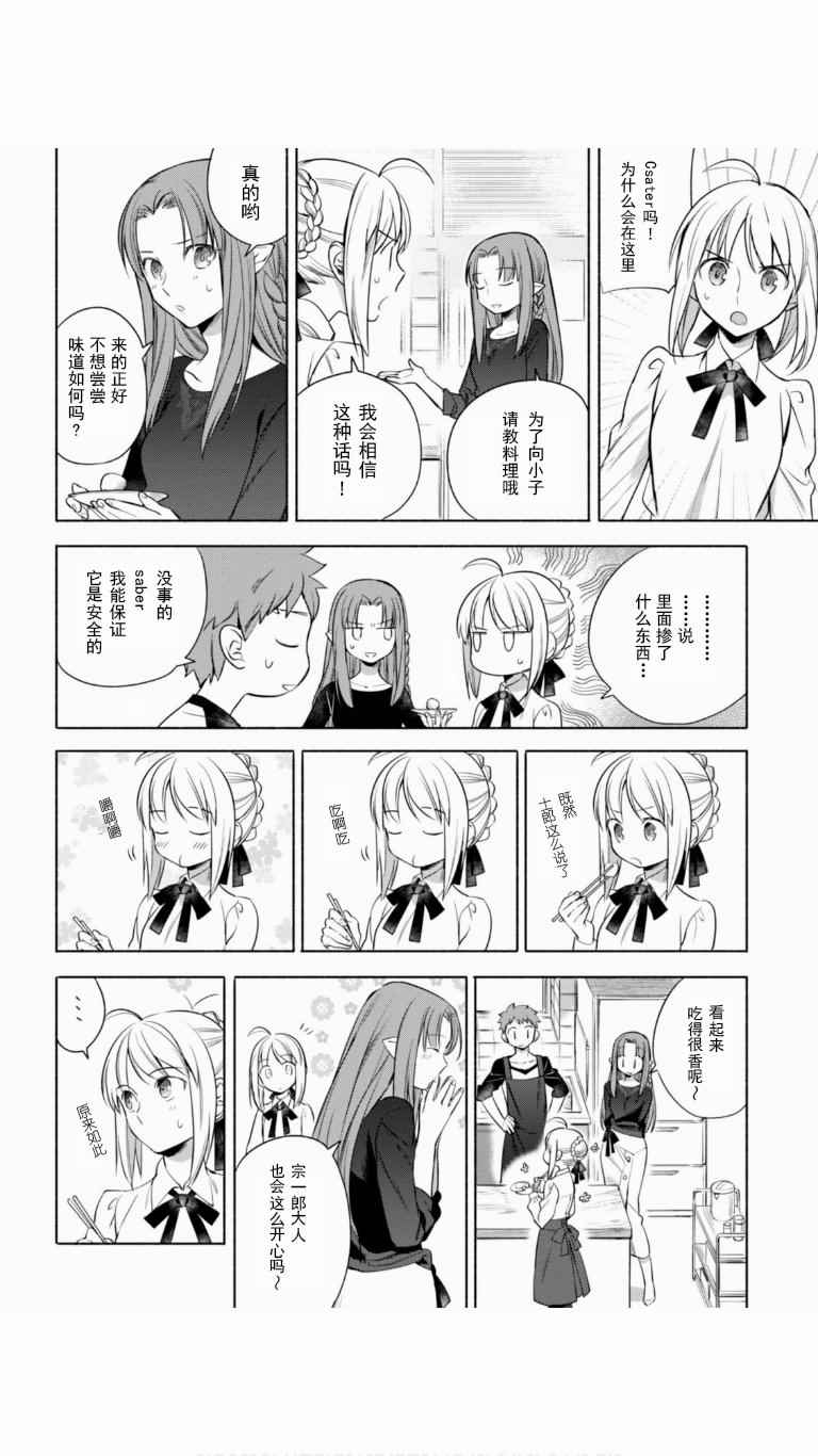 卫宫家今天的饭漫画 ,《卫宫家今天的饭》是根据原作游戏与动画为题材创作的美食漫,卫宫士郎每天忙著给SABER、间桐樱等女生做饭。第一话中的好媳妇卫宫士郎顶著大雪天在街上买食材准备晚上打火锅,毕竟这是圣杯战争的重要一环。卫宫士郎在众人面前示了整个做菜过程,非常详细,对厨艺有兴趣的同学可以跟著做成现实[]实版[-折叠]