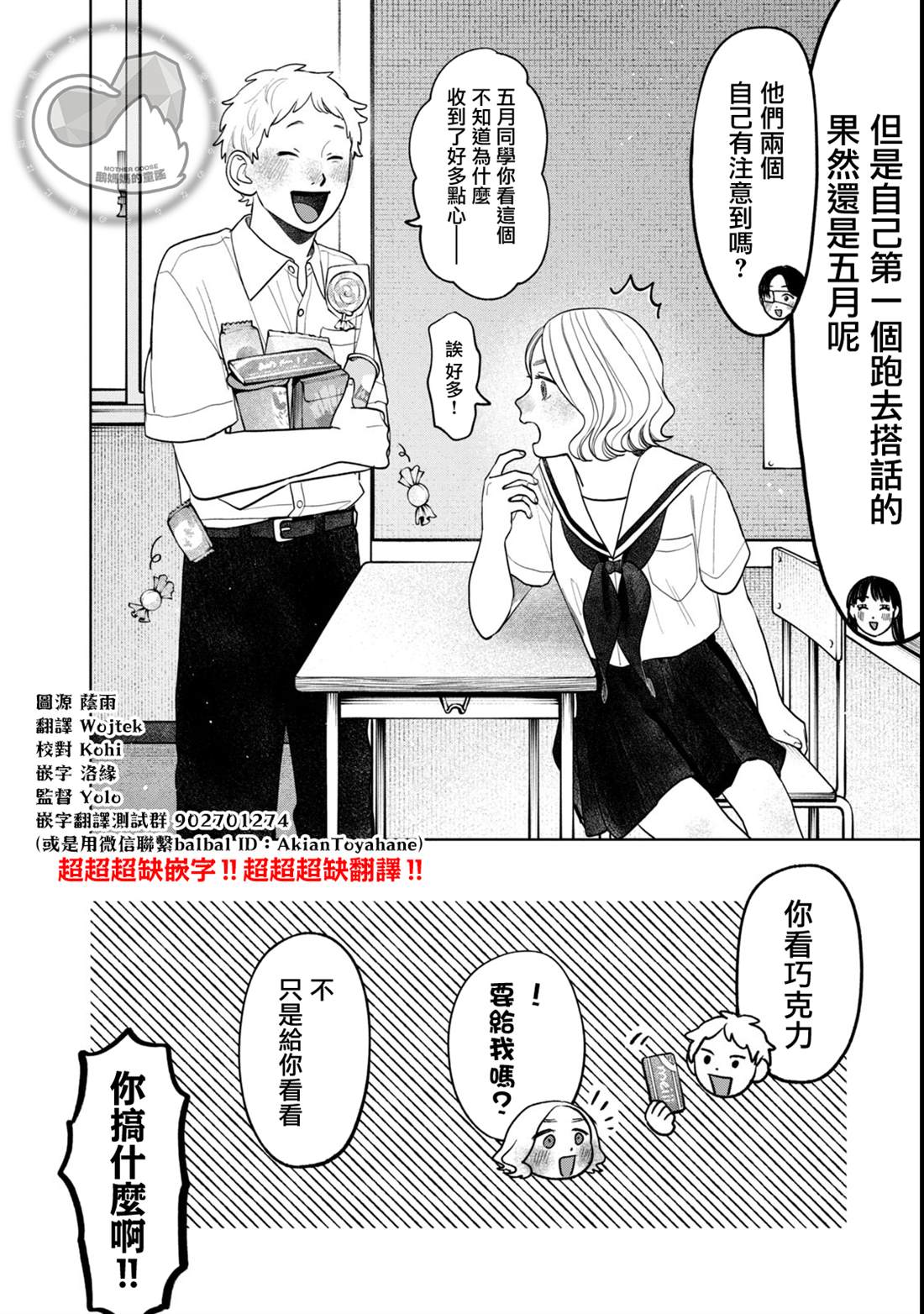 「你染头发了啊」 「是啊」 「为什么染头发呢?」 「因为你……,你昨天……」 坐在我旁边的金发变成了黑发的不良少女JK:清水同学,声音逐渐变小,小脸微微一红,把脸埋在了桌子上。 之后,我:本堂大辉,和朋友聊起恋爱话题时说「想和女孩子一起做饭」,结果第二天,经常逃课的清水同学就和我一起做饭了;当我说「[]「想尝尝女孩子的手艺」时,不知为什么她分给一份便当…… 学校里最可怕的不良少女,实际上在恋爱方面却很笨拙,少女心的清水同学与我之间的青春爱情喜剧[-折叠]