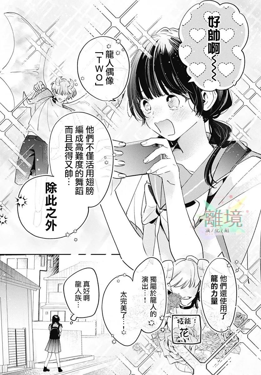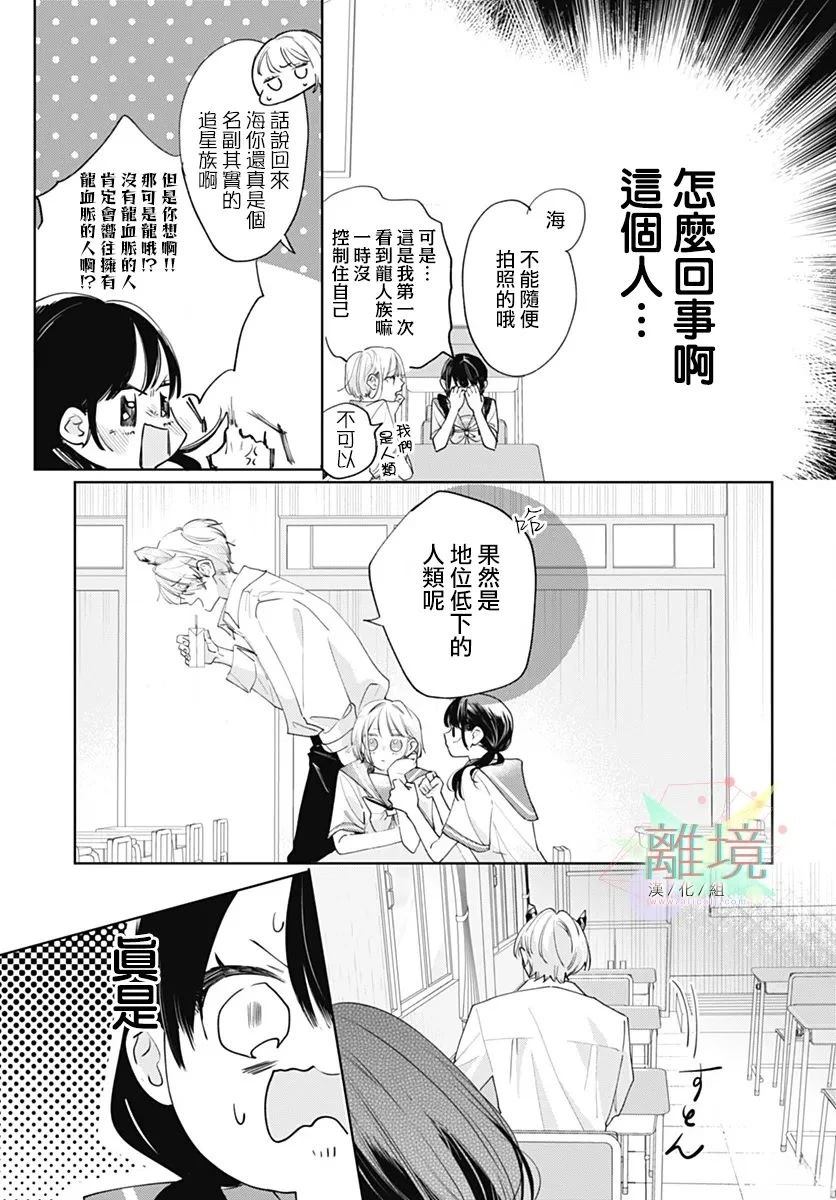 佐仓海非常喜欢龙人族偶像, 想知道更多有关龙人族的事, 可以的话也想跟他们交朋友。 某天班里来了一位转学生天野初音, 没想到真的遇见了龙人族……!