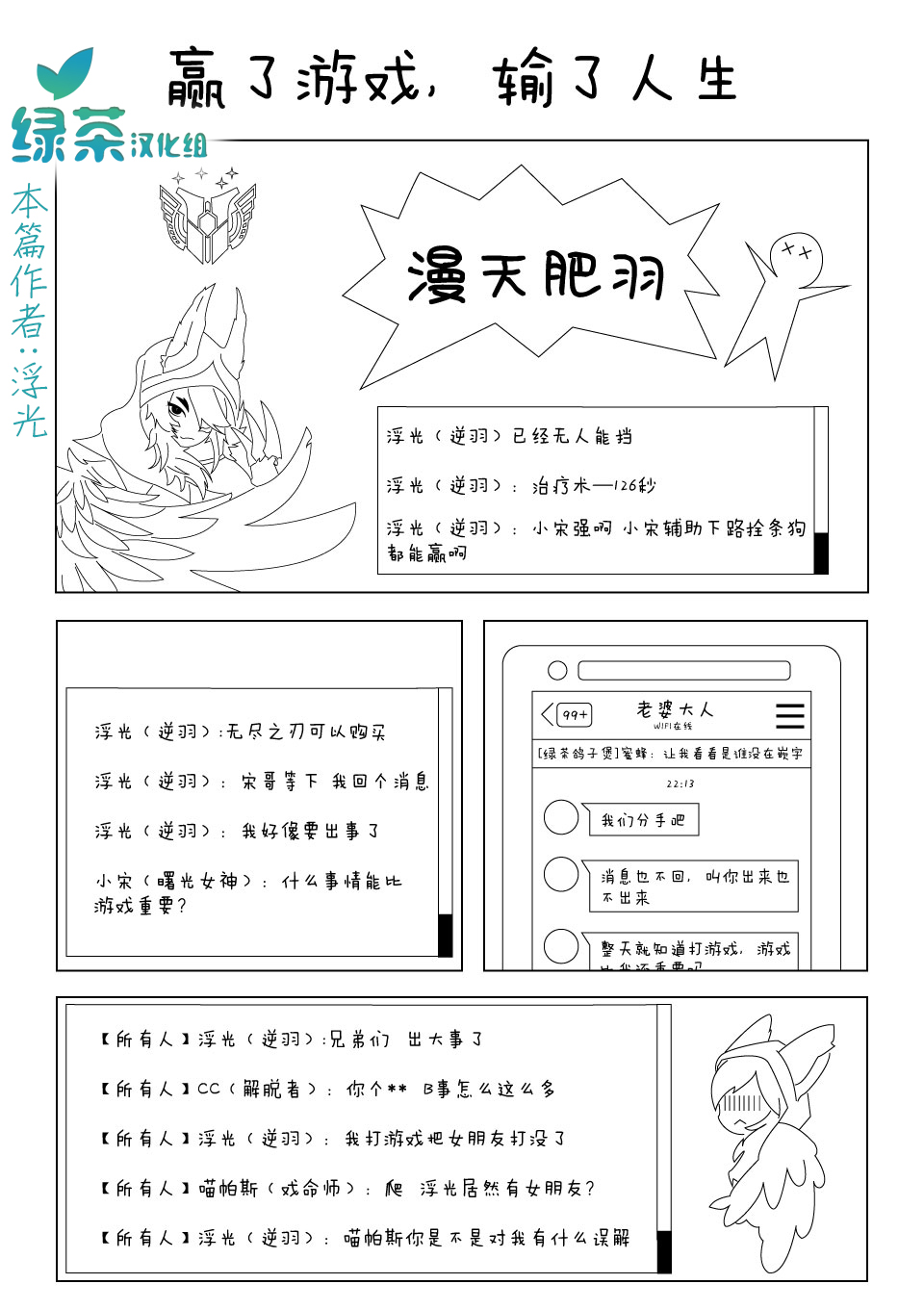 绿茶汉化组趣事漫画,以群魔乱舞的形式来讲述组内发生的趣事、黑历史、梗、全能美少女组长momo、温柔大姐姐蜜蜂、粉切黑冬至、钞能力博仔、人见人爱喵帕斯、肝帝小智、老色批迅哥等等,我们将通过共同的努力来创造记录我们美好时光的优秀作品,承载著我们的爱与勇气,希望您看得心。
