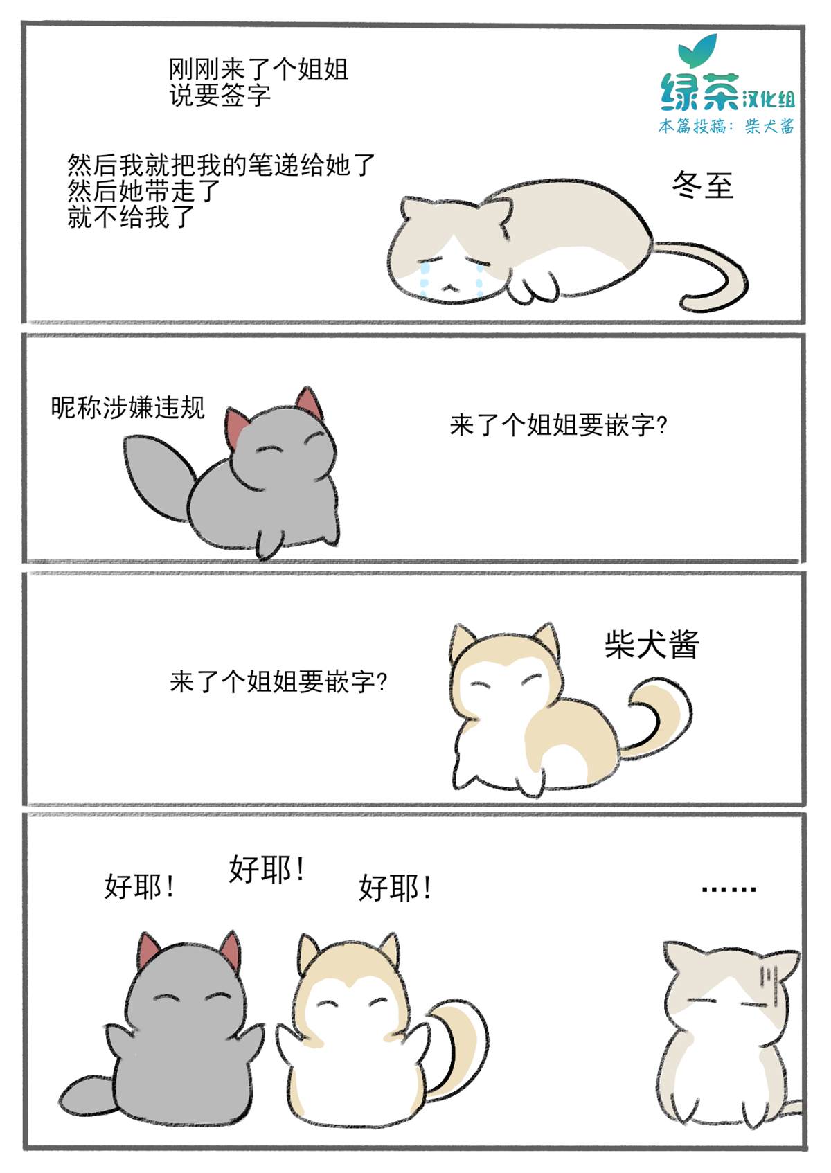 绿茶汉化组趣事漫画,以群魔乱舞的形式来讲述组内发生的趣事、黑历史、梗、全能美少女组长momo、温柔大姐姐蜜蜂、粉切黑冬至、钞能力博仔、人见人爱喵帕斯、肝帝小智、老色批迅哥等等,我们将通过共同的努力来创造记录我们美好时光的优秀作品,承载著我们的爱与勇气,希望您看得心。