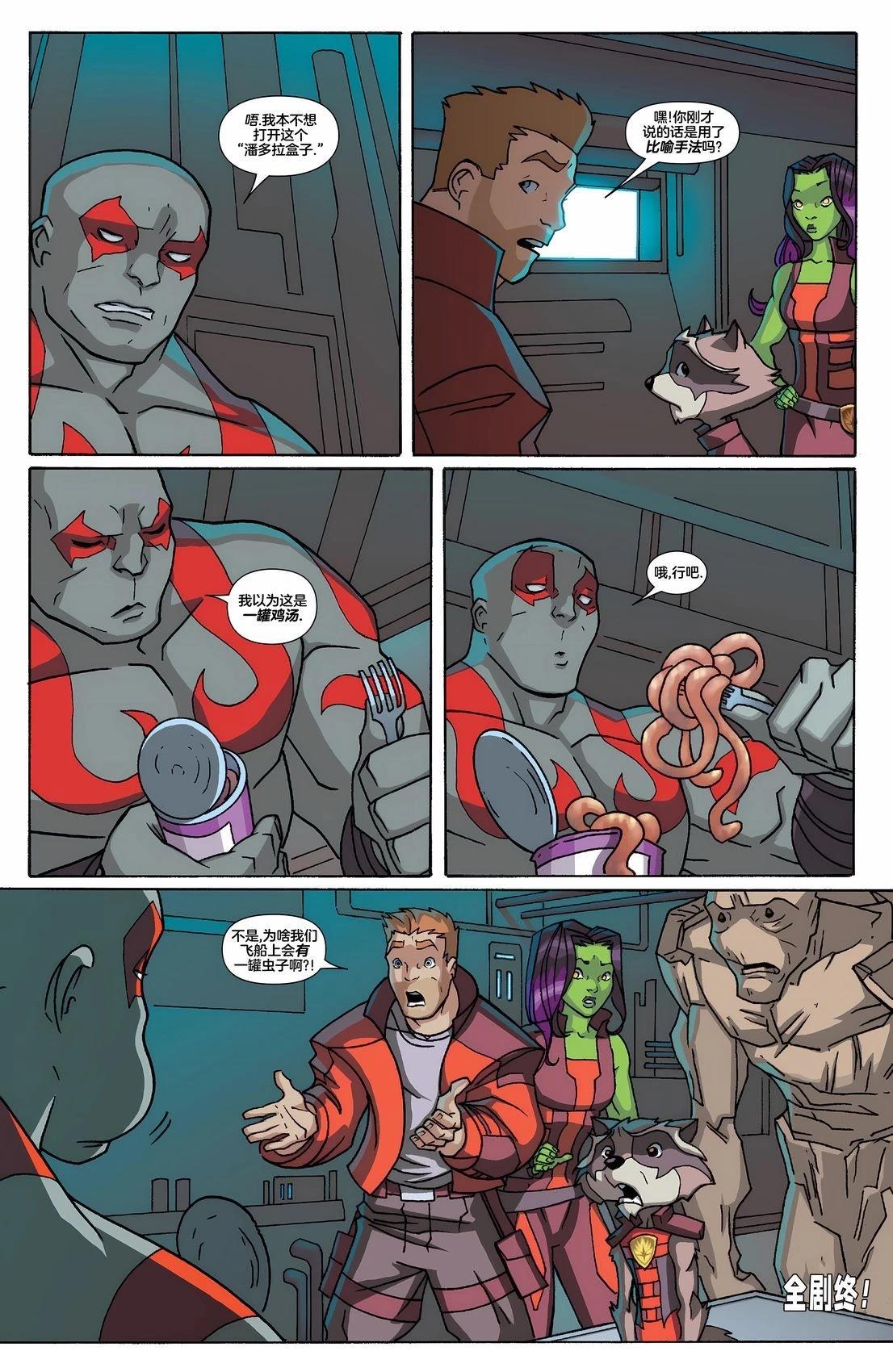 本漫画包含4个独立小故事和各银护成员的起源故事,全部集中一次性放出!总汉化页数达80,量大管饱,绝对能满足您的观看体验! 001期:银护小队因为飞船的故障被迫坠落在了一颗奇怪的星球上,随后他们收到了一群「孩子们」的「求救」...002期:银护小队因为分房间的问题产生了争执,不住到舒服的房间他们决[]决不罢休,在这期间他们还遇到了一位神秘访客...003期:银护小队里的德拉克斯因为各种原因生病感冒了,而他的喷嚏的威力可是声名显赫!004期:银护小队因为星爵糟糕的驾驶技术再一次使飞船发生了坠落,这回他们来到了一颗充满植被的星球,而成员中的格鲁特似乎与这里有著不一般的关系..[-折叠]