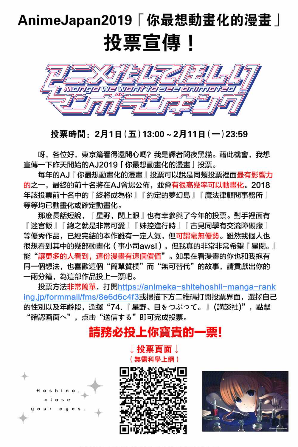 星野、闭上眼。