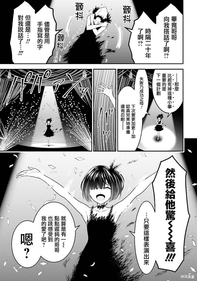 被妹妹监禁著的我,才刚逃出来就被卡车给辗死了。 这次绝对要逃脱那个恶魔般妹妹,过上幸福的人生。 嘻嘻嘻。……找到你啰,哥哥?