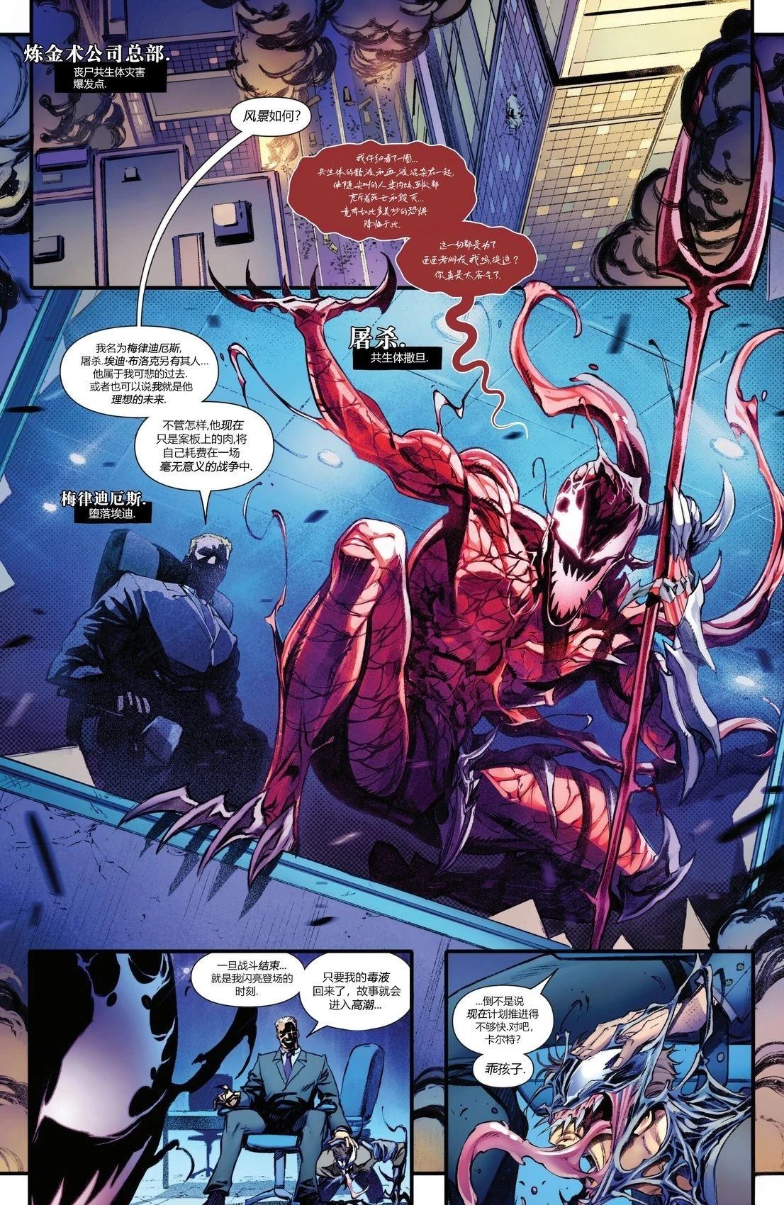 毒液共生体失踪了,因为他认为是自己让埃迪和迪兰的生活变得愈发糟糕。与此同时,埃迪和迪兰都预见了如果对方继续与毒液结合,未来那可怕且不同寻常的景象……所以他们都会不惜一切代价阻止这黑暗命运的降临……即使这意味著要发动一场战争!