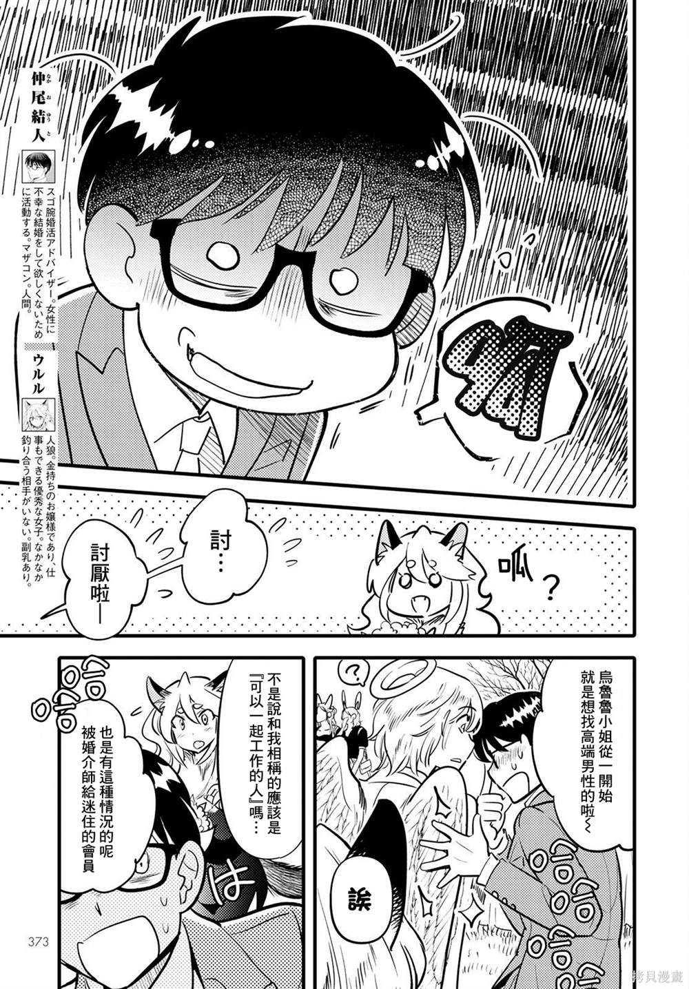 少年时期目睹了母亲几段不幸婚姻的仲尾结人,长大后因为不能允许有遭受不幸婚姻的女性存在而成为了婚姻介绍人。 某次下班路上误入了魔物的小镇,在这里启了给魔物介绍婚姻的工作?!