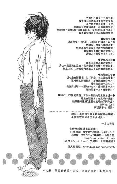 女强人纱奈酒后醒来,发现自己正躺在饭店床上,身边还有一个外派的牛郎!而这个牛郎白天工作的公司,竟是自己公司急欲拉拢的工作伙伴!为了将来,纱奈只好硬著头皮继续与牛郎交往,却在不知不觉中喜欢上对方。究竟纱奈要怎么办才好呢?同时收录其他3篇短篇漫画。