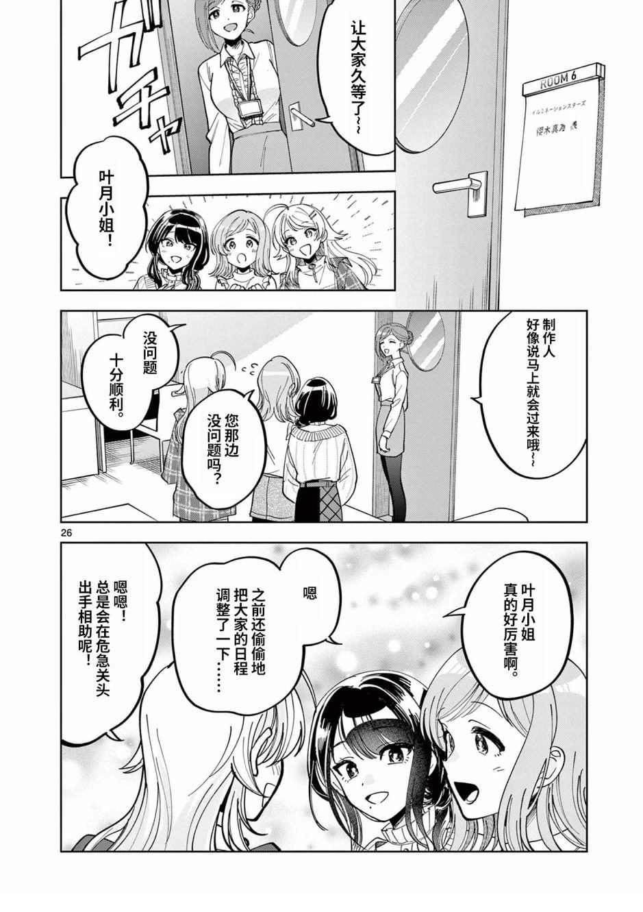 「283Prodeuction」是一家聚集著许多个性丰富的小偶像,热热闹闹宛如「家」一般的小小事务所。回复电话、制作文件、核算经费……打理著这些「培育」之外的工作,支持璀璨闪耀著的小偶像们的即是事务员。283Pro的事务员·七草叶月。作为一名事务员、一位女儿、一位姐姐,她积累下来的每一天和每一份思念[]念,都会成为使小偶像们「闪耀」的光芒——以事务员的视角讲述的全新「偶像大师 闪耀色彩」由此幕[-折叠]