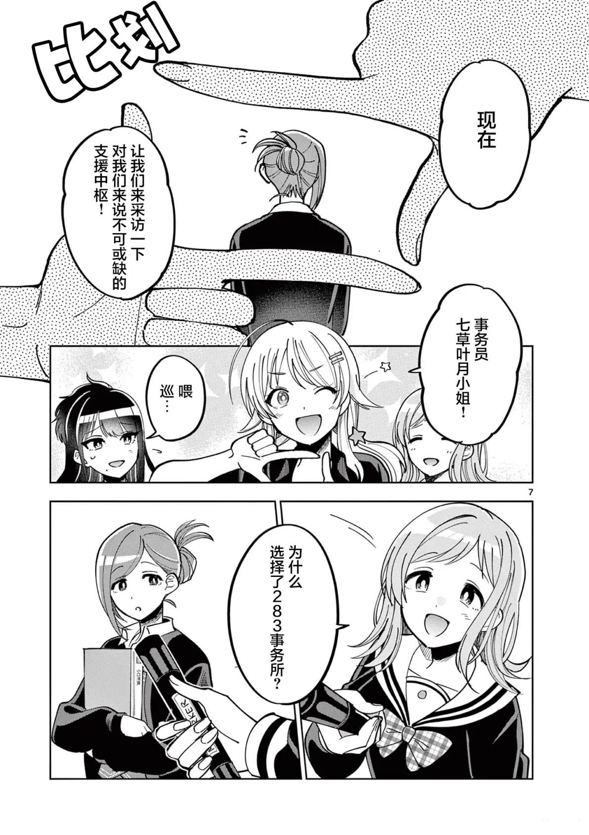 「283Prodeuction」是一家聚集著许多个性丰富的小偶像,热热闹闹宛如「家」一般的小小事务所。回复电话、制作文件、核算经费……打理著这些「培育」之外的工作,支持璀璨闪耀著的小偶像们的即是事务员。283Pro的事务员·七草叶月。作为一名事务员、一位女儿、一位姐姐,她积累下来的每一天和每一份思念[]念,都会成为使小偶像们「闪耀」的光芒——以事务员的视角讲述的全新「偶像大师 闪耀色彩」由此幕[-折叠]