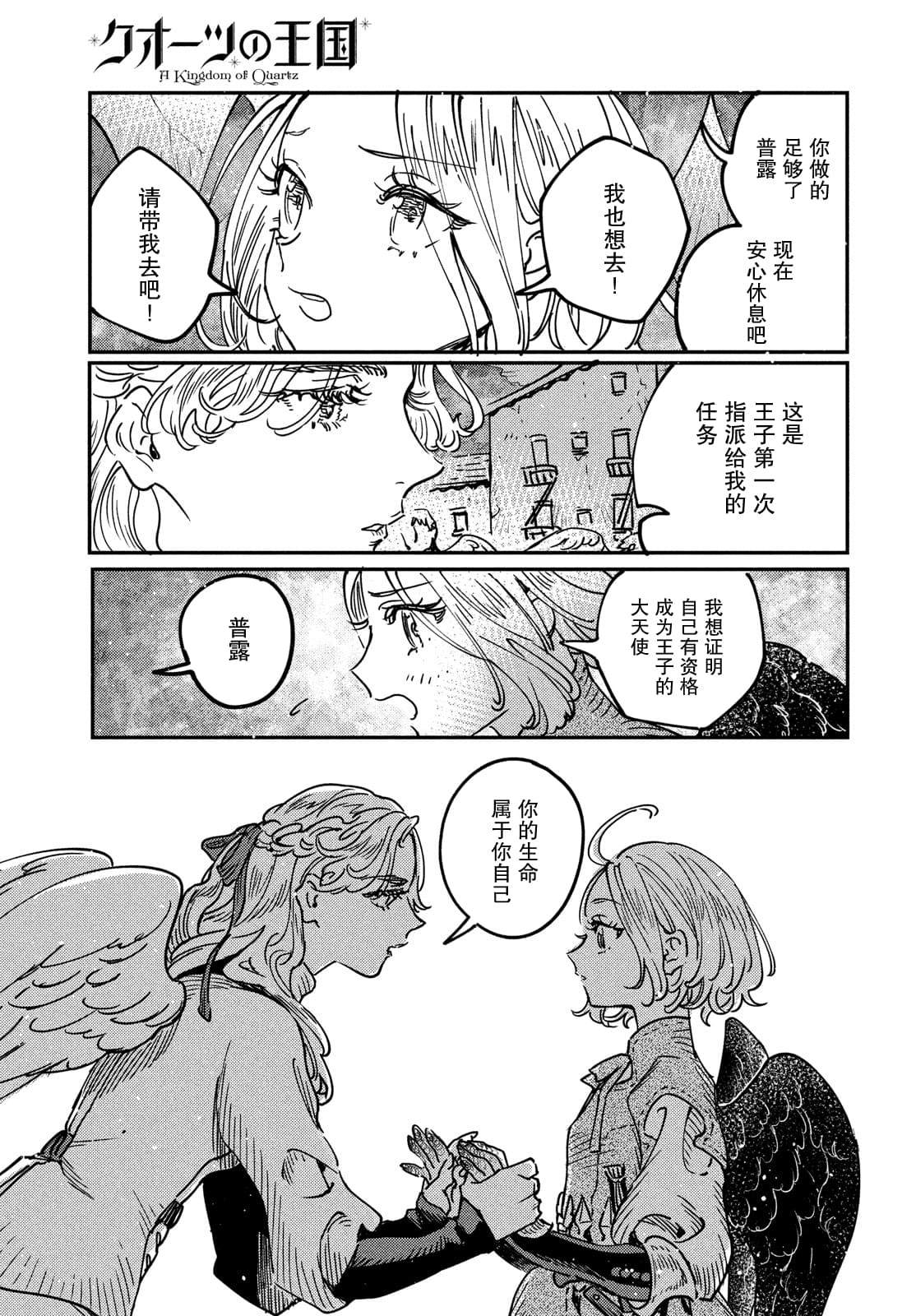 「天使」——是遵从女神的意志,从恶魔手中守护石英王国的英雄。带著黑色翅膀出生的孤儿普露,每天过著梦想成为天使的安逸生活。但是有一天,与王子的相遇让她的命运齿轮始转动——!