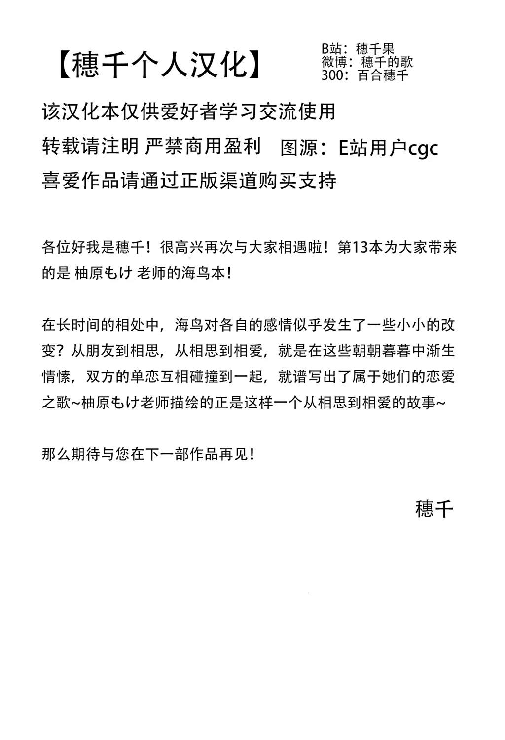 柚原もけ 老师的作品~CP为海鸟向~