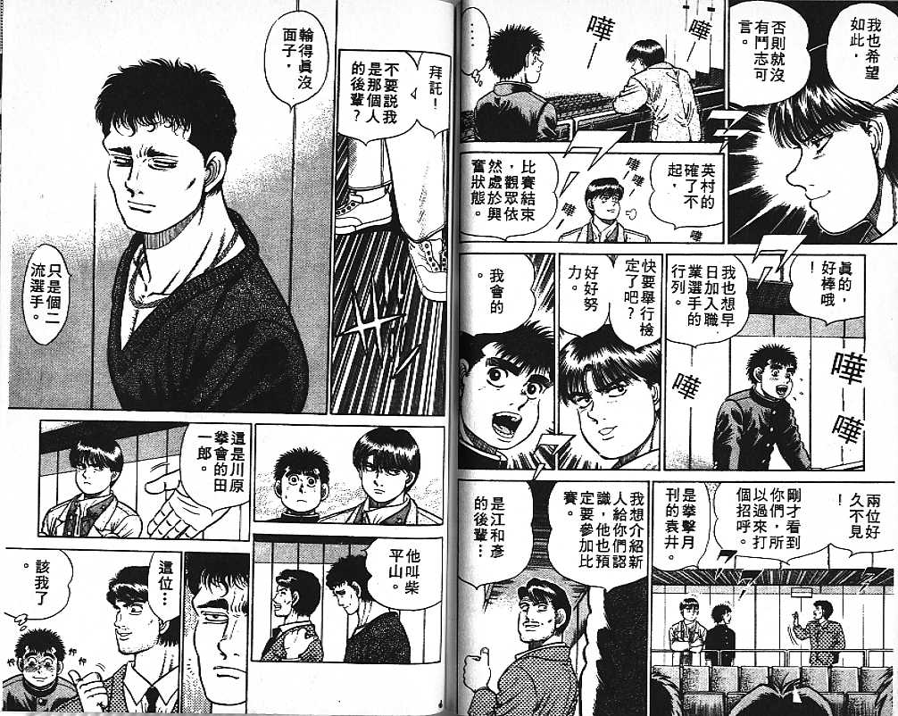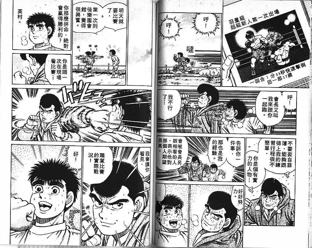 所谓的“强大”是怎么回事呢?我也想变强大!老是打不赢别人、被人欺负的高中生幕之内一步,跟拳手鹰村相遇后,体内潜伏的黄色炸药神拳终于被唤醒!幕之内一步懹抱著职业拳手的美梦,准备要向鸭川拳馆的入门测试挑战了! 之内一步与首位强敌宫田一郎再度决战的铃响起了!面对著宫田漂亮的步法,一步向胜利挑战!现在[]在要测试一下会长不眠不休、付出血汗调教的特训成果!连续猛击打倒宫中,摧毁那必杀的长拳攻击绝招! 终于,初次登场赛的日子来临,应战的敌手是小田裕介–擅打右钩拳的拳手,一步之周围的好友都认为他一定会胜利!但是到了擂台上,小田却有如脱胎换骨一般!超级激烈战斗始!一步能在初次登场赛中赢得胜利吗[-折叠]