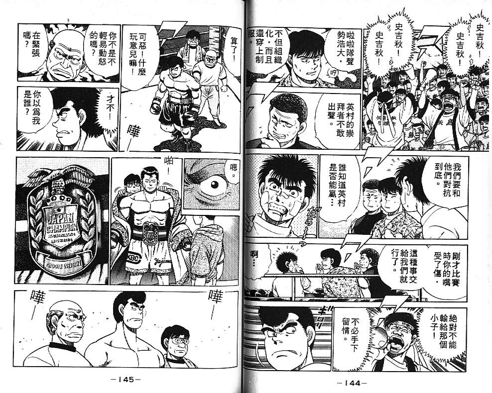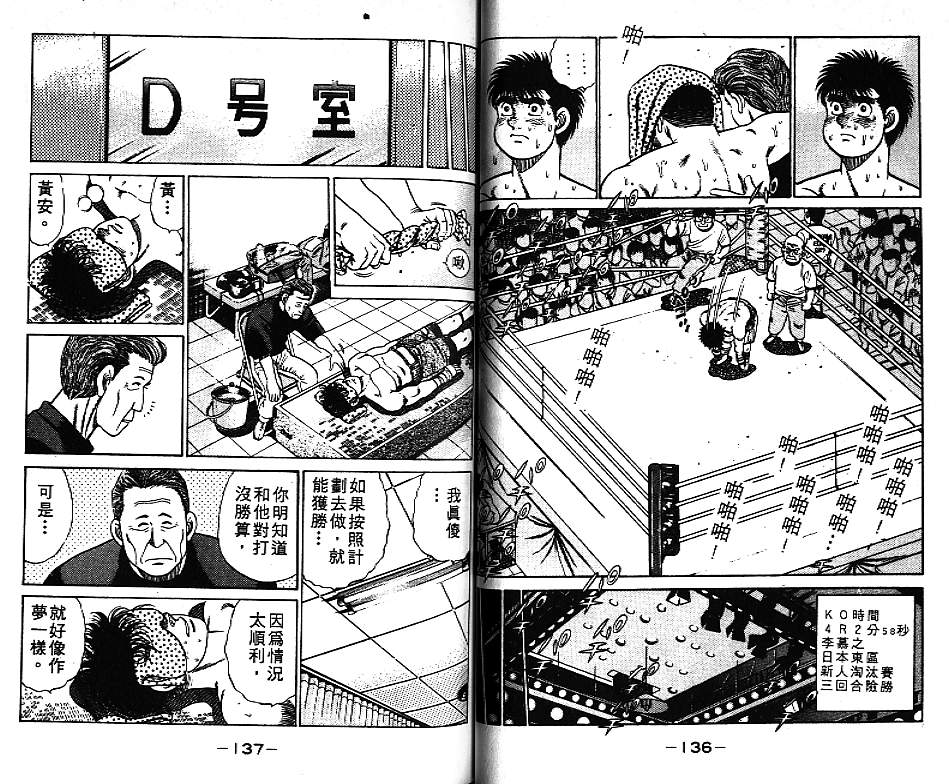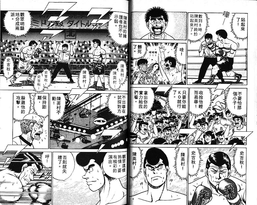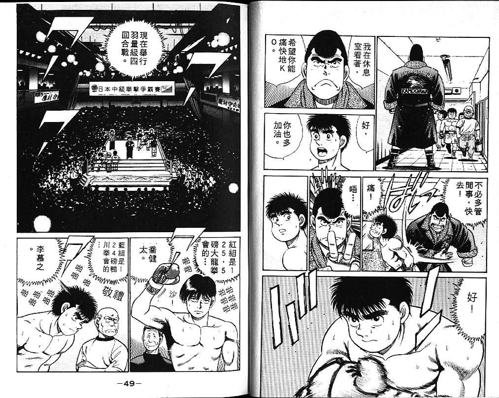 所谓的“强大”是怎么回事呢?我也想变强大!老是打不赢别人、被人欺负的高中生幕之内一步,跟拳手鹰村相遇后,体内潜伏的黄色炸药神拳终于被唤醒!幕之内一步懹抱著职业拳手的美梦,准备要向鸭川拳馆的入门测试挑战了! 之内一步与首位强敌宫田一郎再度决战的铃响起了!面对著宫田漂亮的步法,一步向胜利挑战!现在[]在要测试一下会长不眠不休、付出血汗调教的特训成果!连续猛击打倒宫中,摧毁那必杀的长拳攻击绝招! 终于,初次登场赛的日子来临,应战的敌手是小田裕介–擅打右钩拳的拳手,一步之周围的好友都认为他一定会胜利!但是到了擂台上,小田却有如脱胎换骨一般!超级激烈战斗始!一步能在初次登场赛中赢得胜利吗[-折叠]