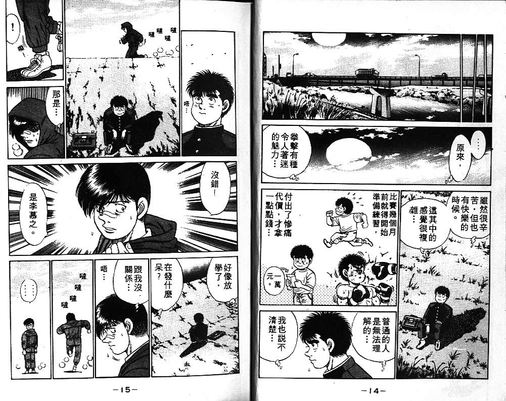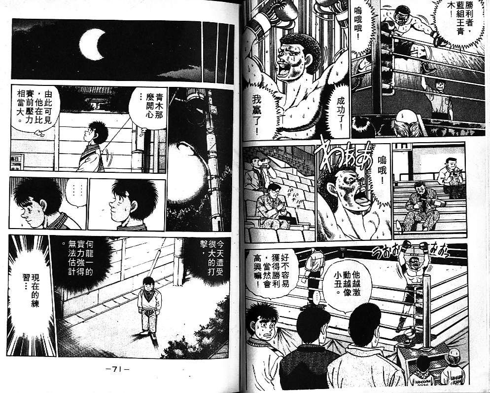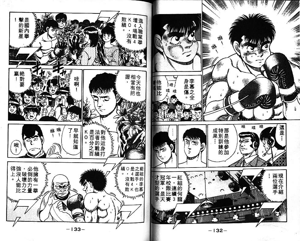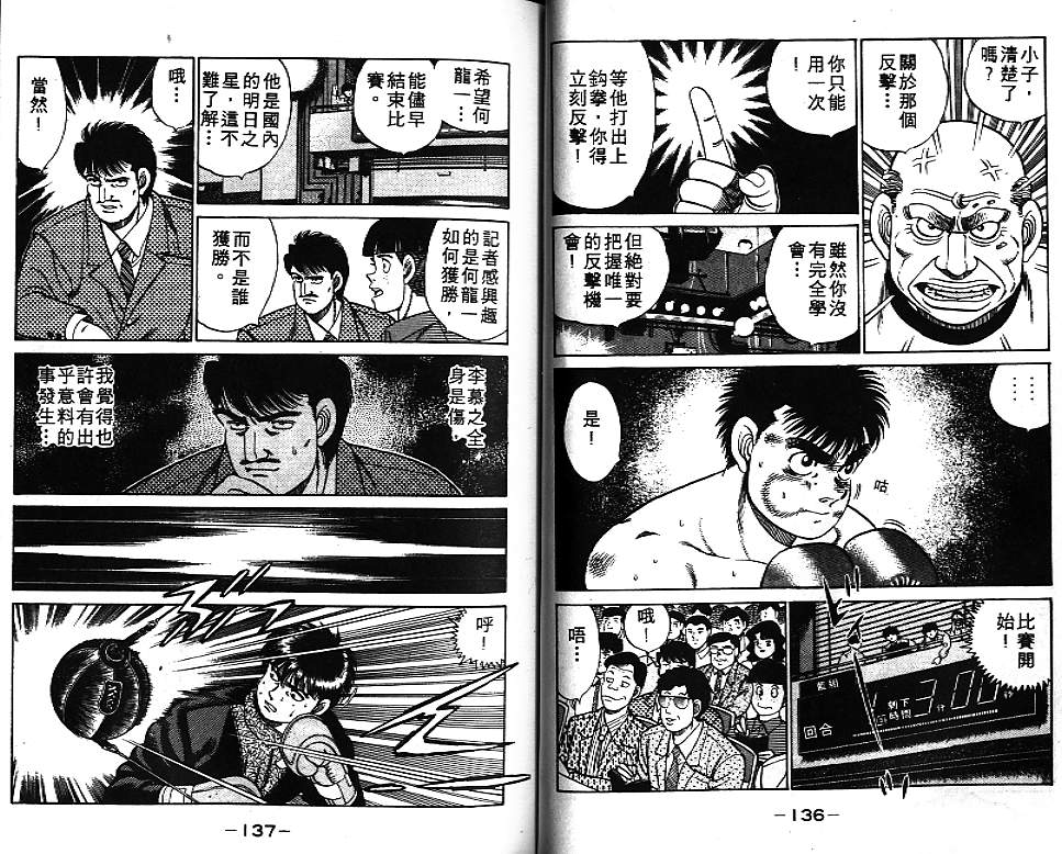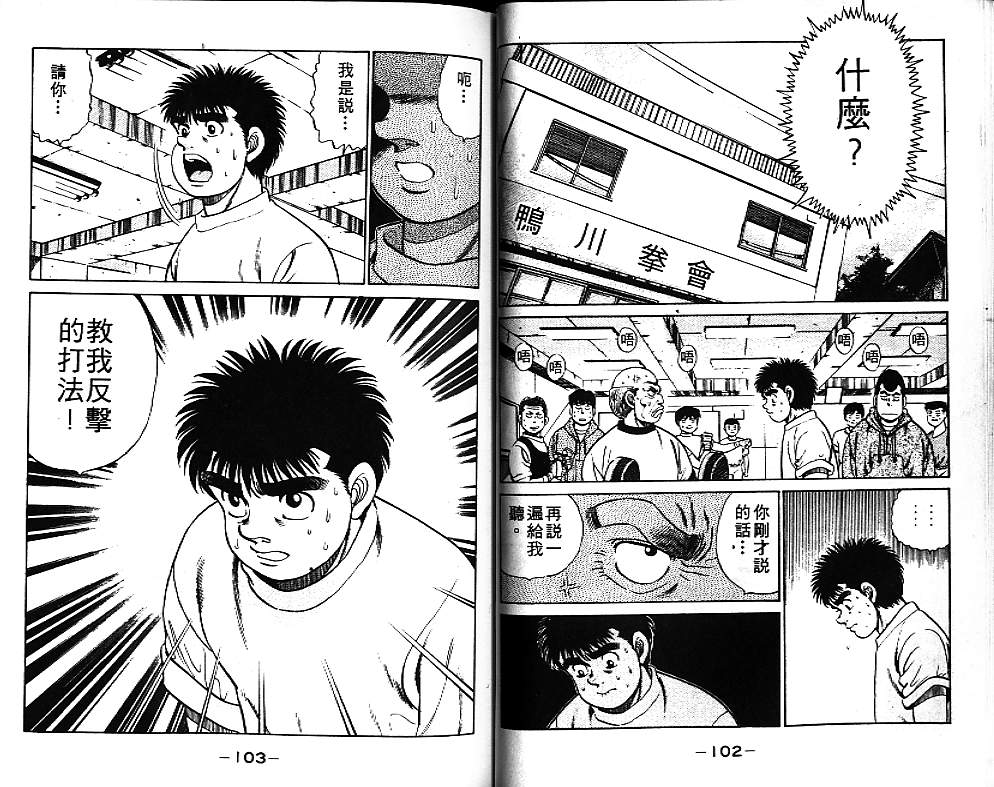 所谓的“强大”是怎么回事呢?我也想变强大!老是打不赢别人、被人欺负的高中生幕之内一步,跟拳手鹰村相遇后,体内潜伏的黄色炸药神拳终于被唤醒!幕之内一步懹抱著职业拳手的美梦,准备要向鸭川拳馆的入门测试挑战了! 之内一步与首位强敌宫田一郎再度决战的铃响起了!面对著宫田漂亮的步法,一步向胜利挑战!现在[]在要测试一下会长不眠不休、付出血汗调教的特训成果!连续猛击打倒宫中,摧毁那必杀的长拳攻击绝招! 终于,初次登场赛的日子来临,应战的敌手是小田裕介–擅打右钩拳的拳手,一步之周围的好友都认为他一定会胜利!但是到了擂台上,小田却有如脱胎换骨一般!超级激烈战斗始!一步能在初次登场赛中赢得胜利吗[-折叠]