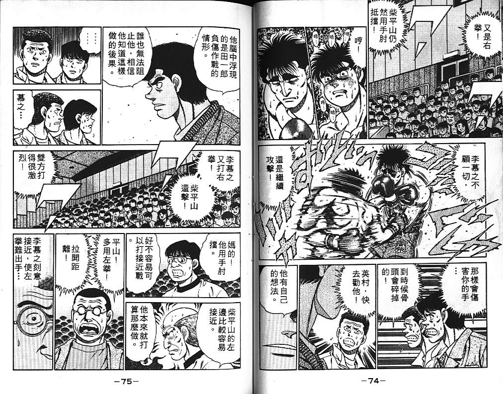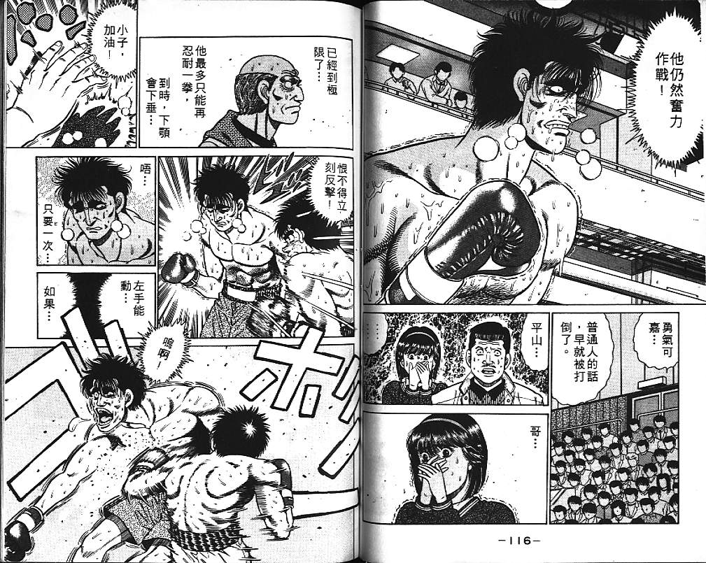 所谓的“强大”是怎么回事呢?我也想变强大!老是打不赢别人、被人欺负的高中生幕之内一步,跟拳手鹰村相遇后,体内潜伏的黄色炸药神拳终于被唤醒!幕之内一步懹抱著职业拳手的美梦,准备要向鸭川拳馆的入门测试挑战了! 之内一步与首位强敌宫田一郎再度决战的铃响起了!面对著宫田漂亮的步法,一步向胜利挑战!现在[]在要测试一下会长不眠不休、付出血汗调教的特训成果!连续猛击打倒宫中,摧毁那必杀的长拳攻击绝招! 终于,初次登场赛的日子来临,应战的敌手是小田裕介–擅打右钩拳的拳手,一步之周围的好友都认为他一定会胜利!但是到了擂台上,小田却有如脱胎换骨一般!超级激烈战斗始!一步能在初次登场赛中赢得胜利吗[-折叠]
