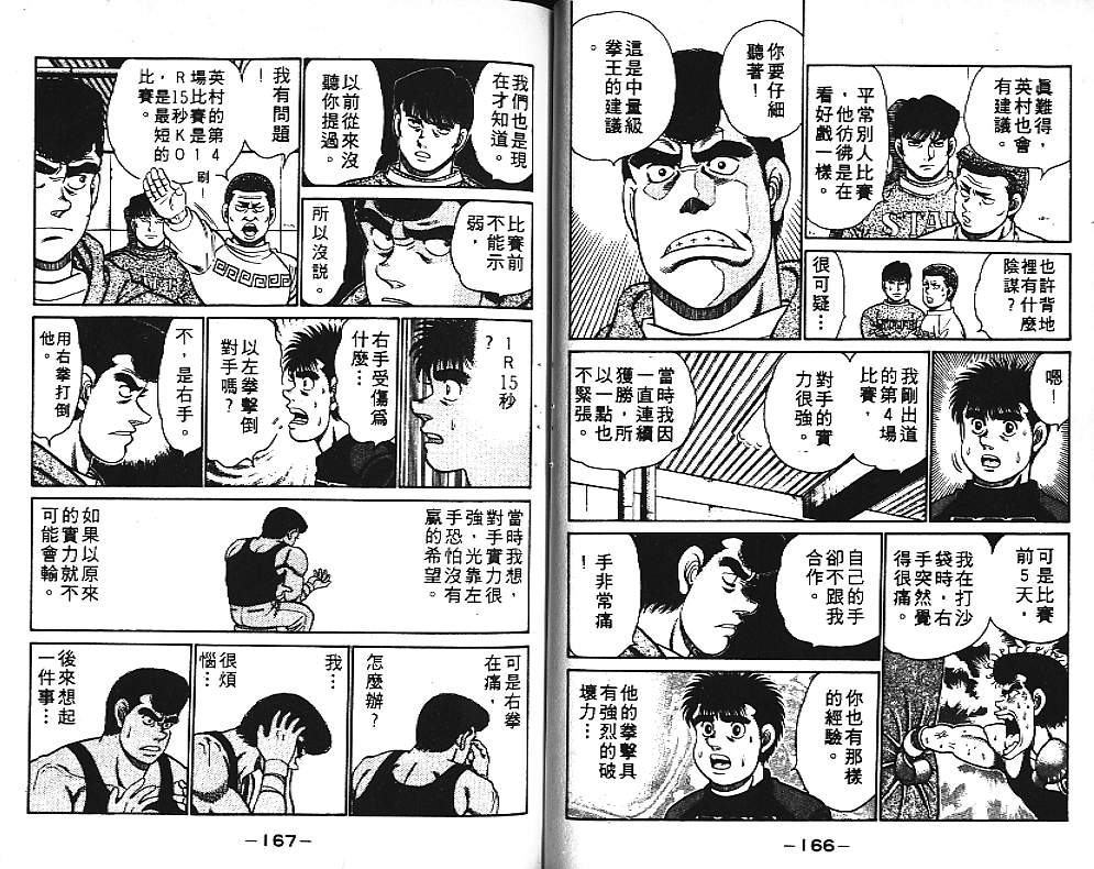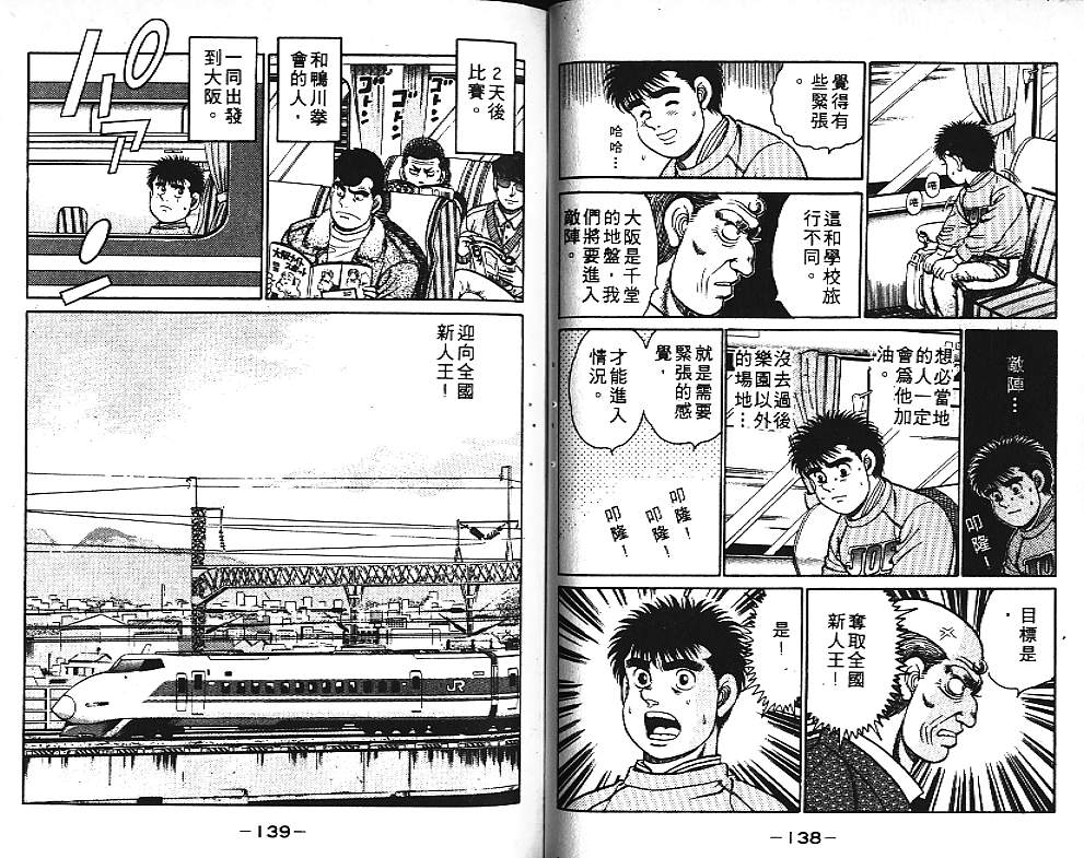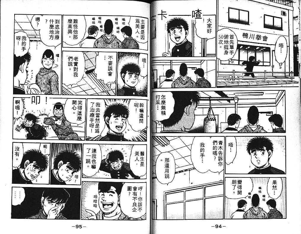 所谓的“强大”是怎么回事呢?我也想变强大!老是打不赢别人、被人欺负的高中生幕之内一步,跟拳手鹰村相遇后,体内潜伏的黄色炸药神拳终于被唤醒!幕之内一步懹抱著职业拳手的美梦,准备要向鸭川拳馆的入门测试挑战了! 之内一步与首位强敌宫田一郎再度决战的铃响起了!面对著宫田漂亮的步法,一步向胜利挑战!现在[]在要测试一下会长不眠不休、付出血汗调教的特训成果!连续猛击打倒宫中,摧毁那必杀的长拳攻击绝招! 终于,初次登场赛的日子来临,应战的敌手是小田裕介–擅打右钩拳的拳手,一步之周围的好友都认为他一定会胜利!但是到了擂台上,小田却有如脱胎换骨一般!超级激烈战斗始!一步能在初次登场赛中赢得胜利吗[-折叠]