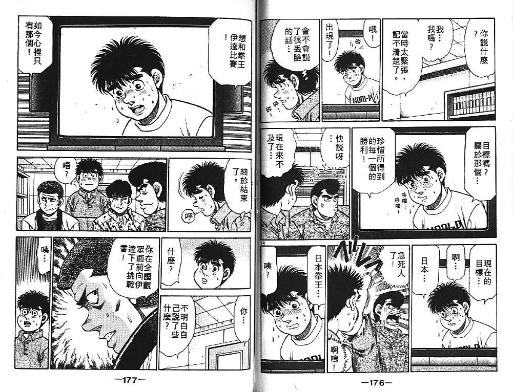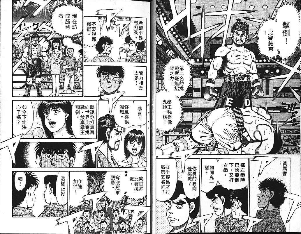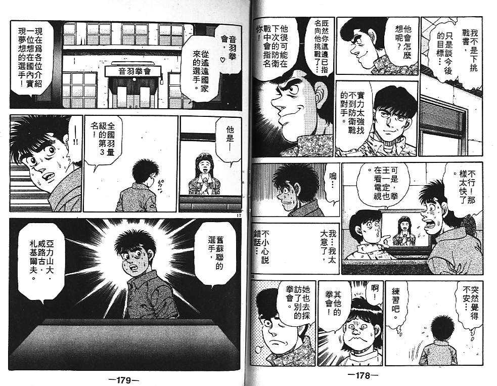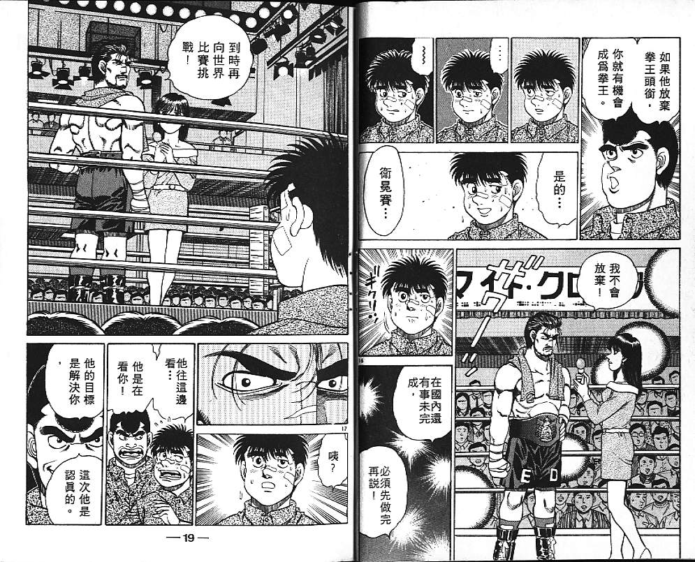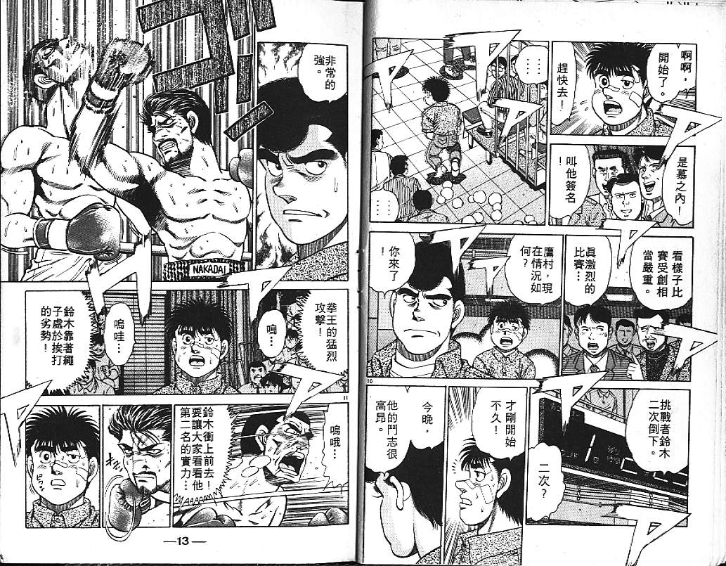 所谓的“强大”是怎么回事呢?我也想变强大!老是打不赢别人、被人欺负的高中生幕之内一步,跟拳手鹰村相遇后,体内潜伏的黄色炸药神拳终于被唤醒!幕之内一步懹抱著职业拳手的美梦,准备要向鸭川拳馆的入门测试挑战了! 之内一步与首位强敌宫田一郎再度决战的铃响起了!面对著宫田漂亮的步法,一步向胜利挑战!现在[]在要测试一下会长不眠不休、付出血汗调教的特训成果!连续猛击打倒宫中,摧毁那必杀的长拳攻击绝招! 终于,初次登场赛的日子来临,应战的敌手是小田裕介–擅打右钩拳的拳手,一步之周围的好友都认为他一定会胜利!但是到了擂台上,小田却有如脱胎换骨一般!超级激烈战斗始!一步能在初次登场赛中赢得胜利吗[-折叠]