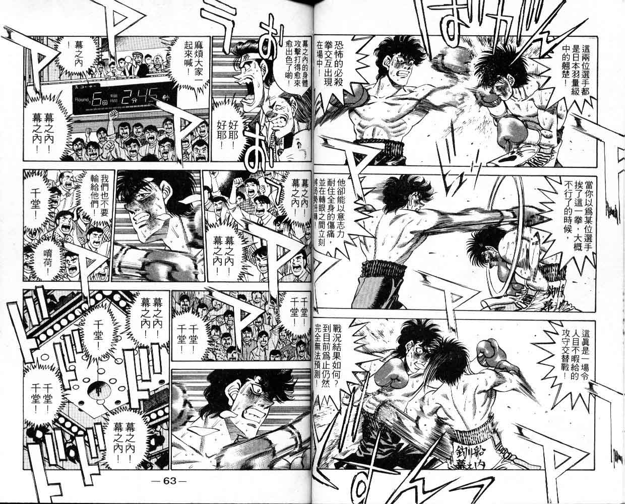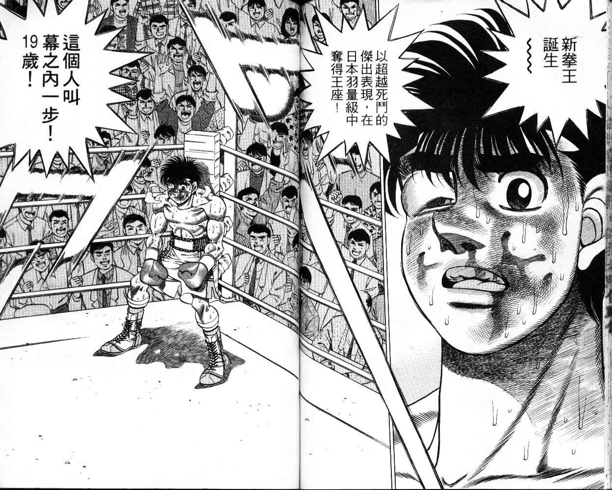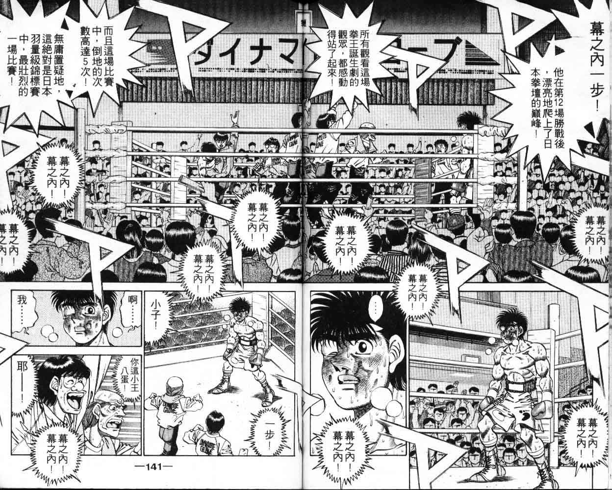 所谓的“强大”是怎么回事呢?我也想变强大!老是打不赢别人、被人欺负的高中生幕之内一步,跟拳手鹰村相遇后,体内潜伏的黄色炸药神拳终于被唤醒!幕之内一步懹抱著职业拳手的美梦,准备要向鸭川拳馆的入门测试挑战了! 之内一步与首位强敌宫田一郎再度决战的铃响起了!面对著宫田漂亮的步法,一步向胜利挑战!现在[]在要测试一下会长不眠不休、付出血汗调教的特训成果!连续猛击打倒宫中,摧毁那必杀的长拳攻击绝招! 终于,初次登场赛的日子来临,应战的敌手是小田裕介–擅打右钩拳的拳手,一步之周围的好友都认为他一定会胜利!但是到了擂台上,小田却有如脱胎换骨一般!超级激烈战斗始!一步能在初次登场赛中赢得胜利吗[-折叠]
