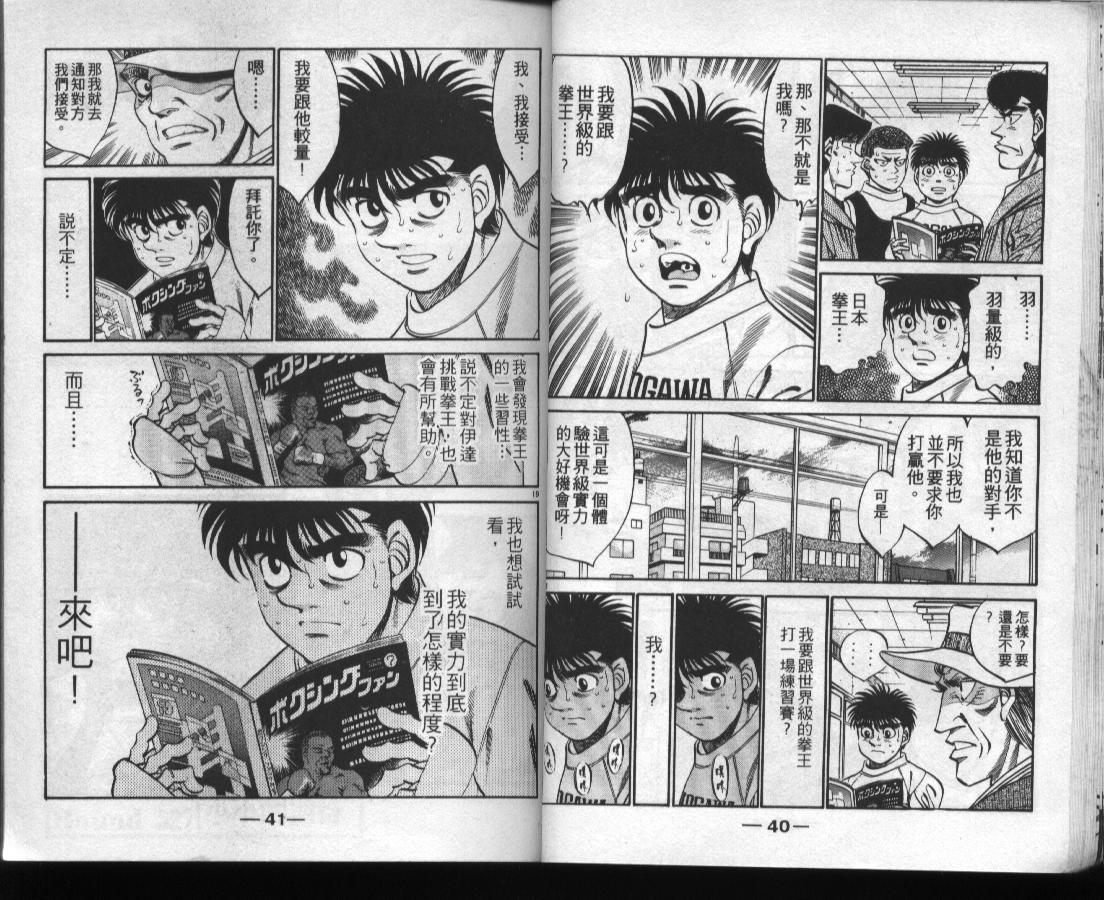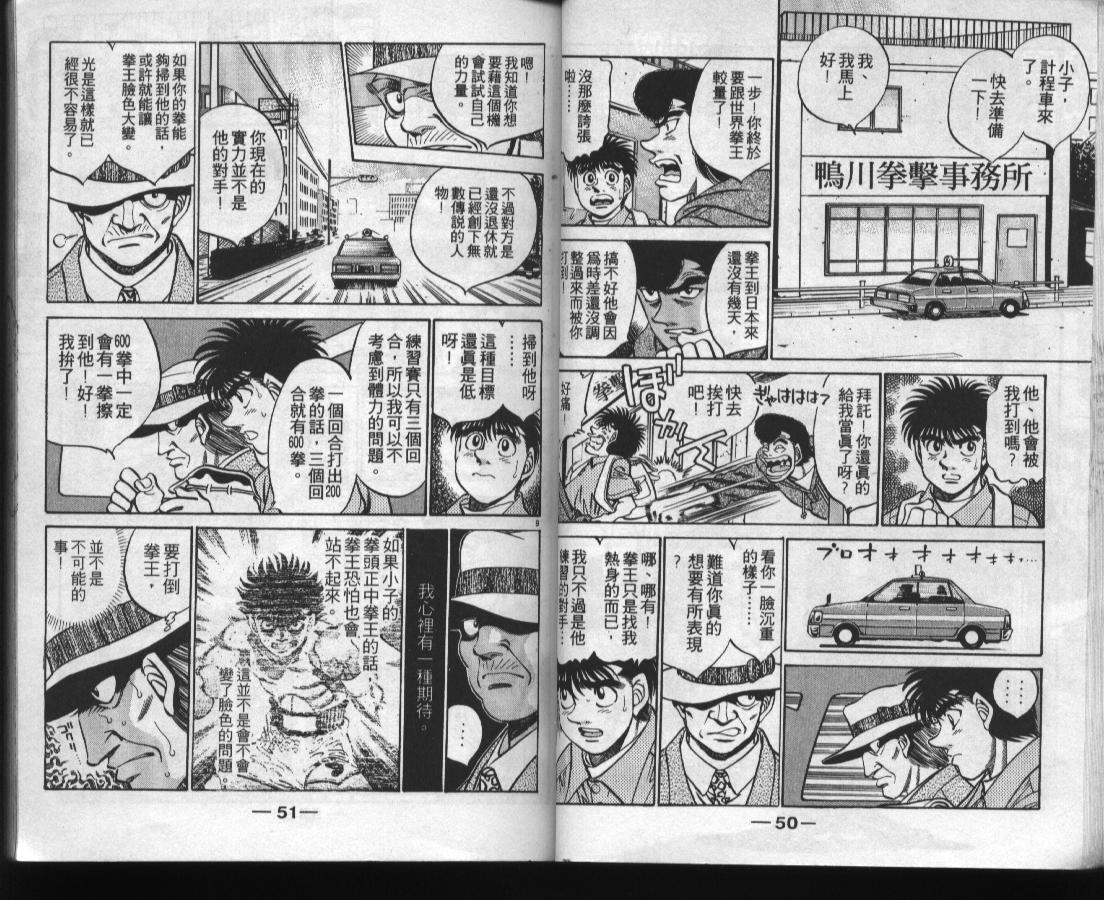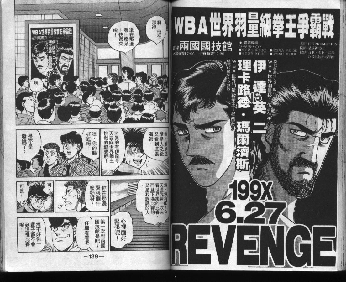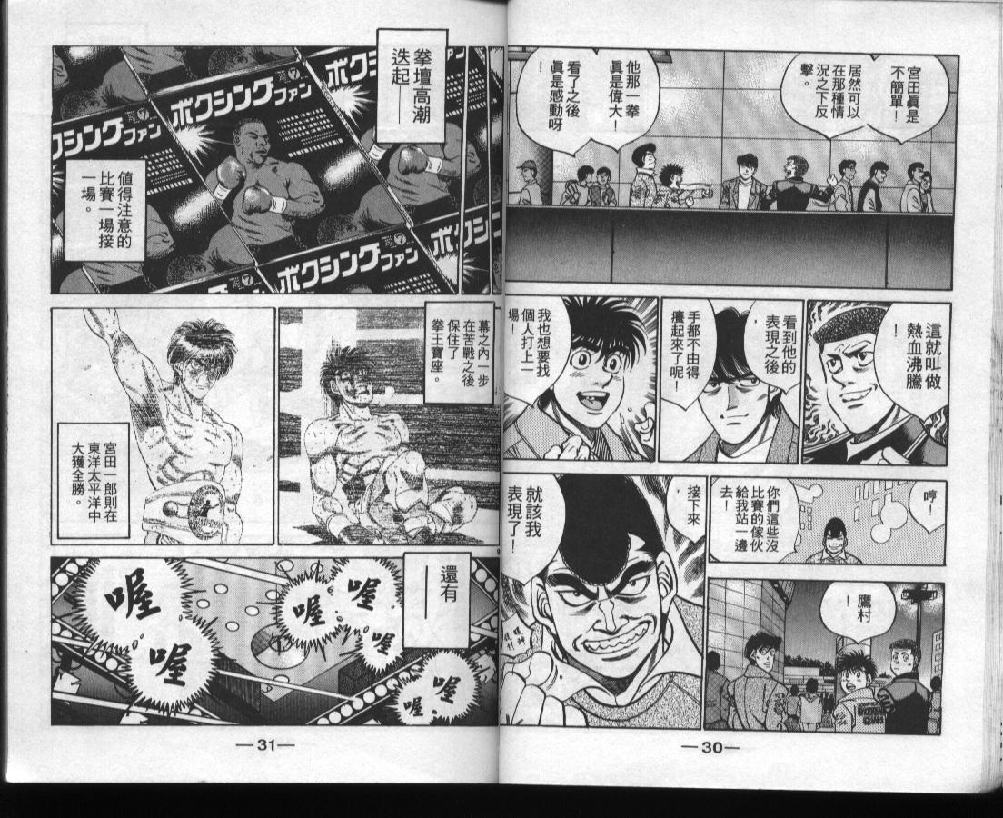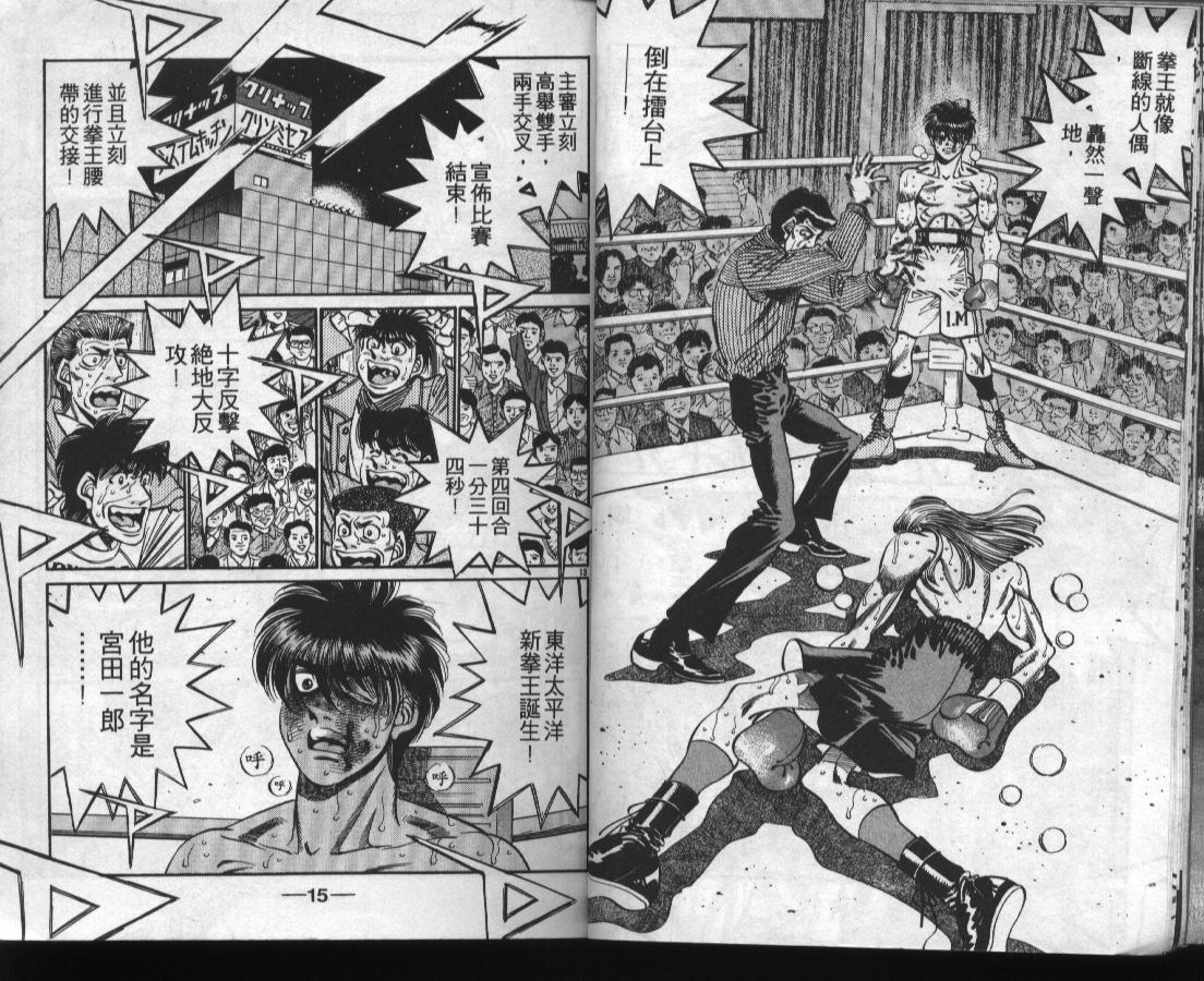 所谓的“强大”是怎么回事呢?我也想变强大!老是打不赢别人、被人欺负的高中生幕之内一步,跟拳手鹰村相遇后,体内潜伏的黄色炸药神拳终于被唤醒!幕之内一步懹抱著职业拳手的美梦,准备要向鸭川拳馆的入门测试挑战了! 之内一步与首位强敌宫田一郎再度决战的铃响起了!面对著宫田漂亮的步法,一步向胜利挑战!现在[]在要测试一下会长不眠不休、付出血汗调教的特训成果!连续猛击打倒宫中,摧毁那必杀的长拳攻击绝招! 终于,初次登场赛的日子来临,应战的敌手是小田裕介–擅打右钩拳的拳手,一步之周围的好友都认为他一定会胜利!但是到了擂台上,小田却有如脱胎换骨一般!超级激烈战斗始!一步能在初次登场赛中赢得胜利吗[-折叠]