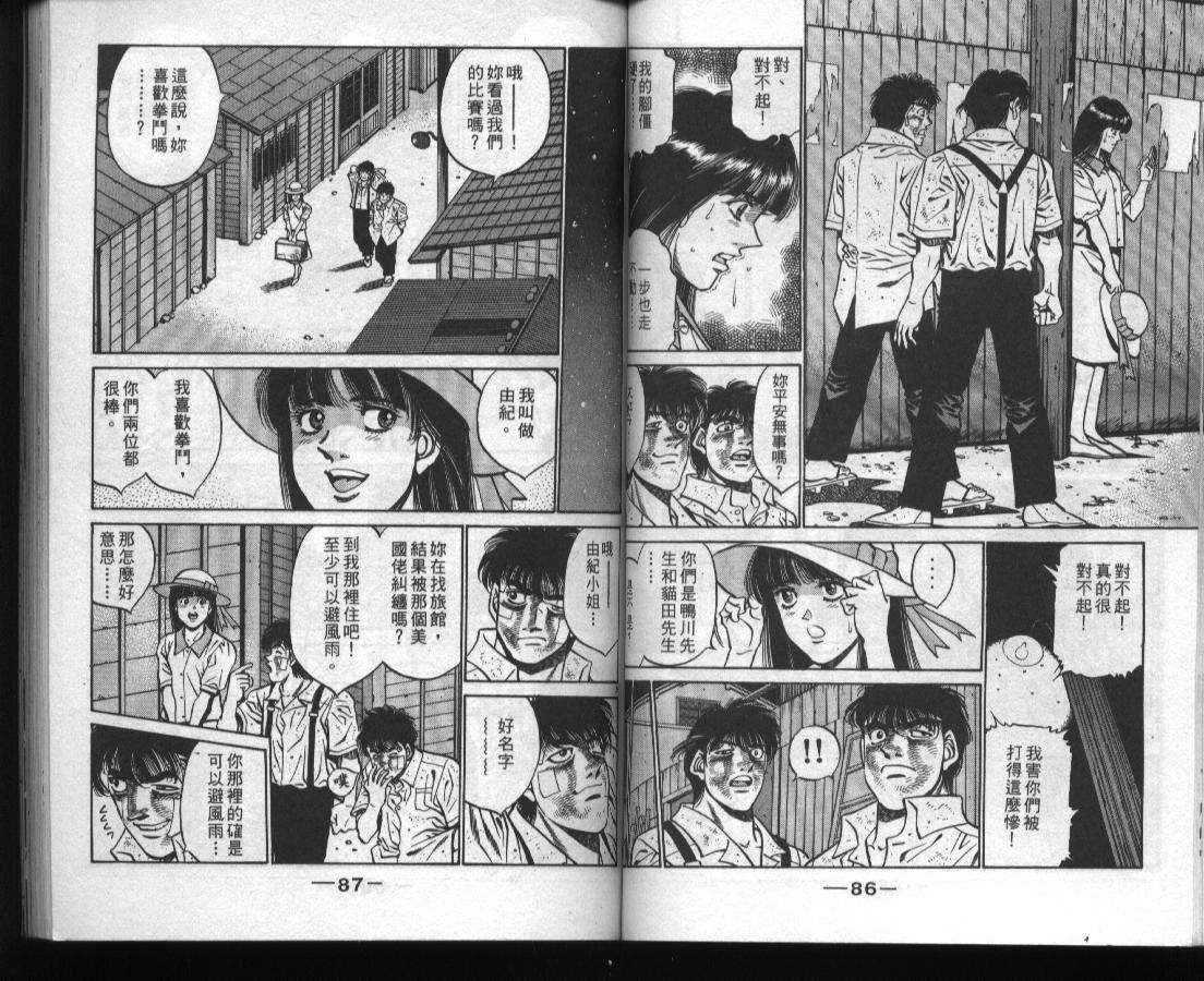 所谓的“强大”是怎么回事呢?我也想变强大!老是打不赢别人、被人欺负的高中生幕之内一步,跟拳手鹰村相遇后,体内潜伏的黄色炸药神拳终于被唤醒!幕之内一步懹抱著职业拳手的美梦,准备要向鸭川拳馆的入门测试挑战了! 之内一步与首位强敌宫田一郎再度决战的铃响起了!面对著宫田漂亮的步法,一步向胜利挑战!现在[]在要测试一下会长不眠不休、付出血汗调教的特训成果!连续猛击打倒宫中,摧毁那必杀的长拳攻击绝招! 终于,初次登场赛的日子来临,应战的敌手是小田裕介–擅打右钩拳的拳手,一步之周围的好友都认为他一定会胜利!但是到了擂台上,小田却有如脱胎换骨一般!超级激烈战斗始!一步能在初次登场赛中赢得胜利吗[-折叠]