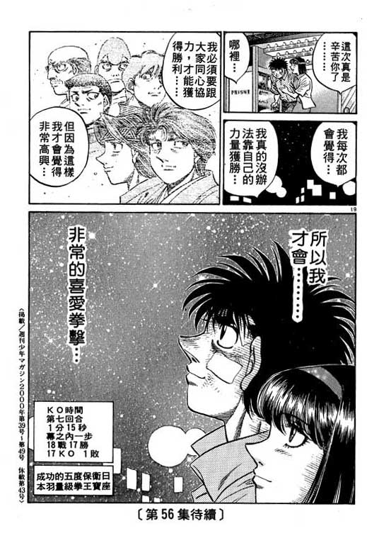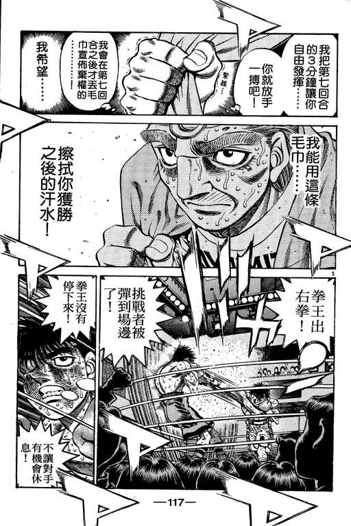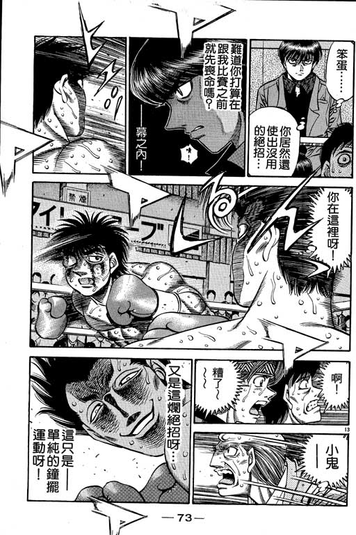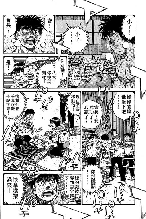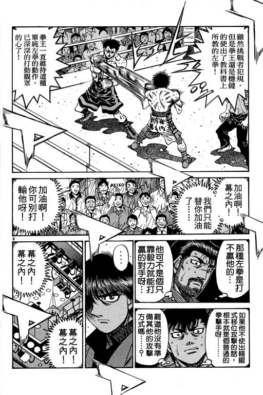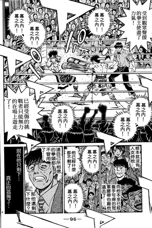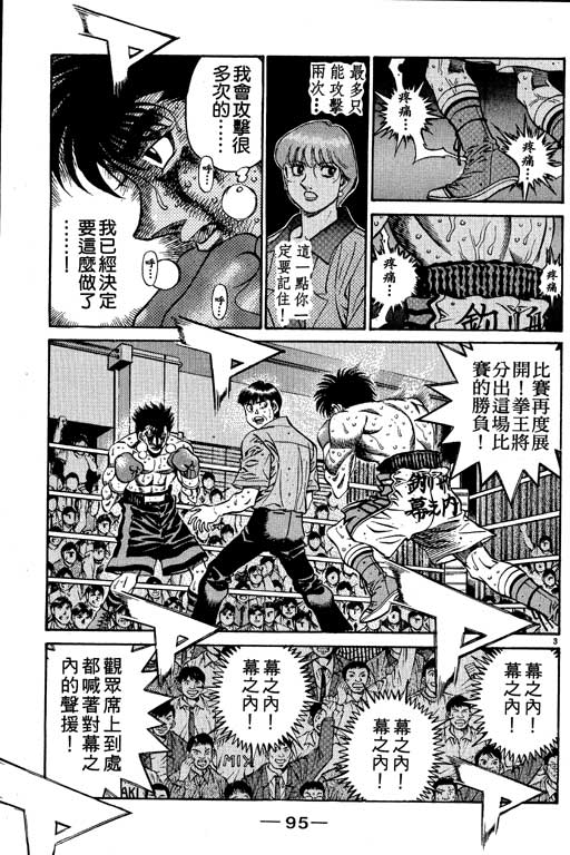 所谓的“强大”是怎么回事呢?我也想变强大!老是打不赢别人、被人欺负的高中生幕之内一步,跟拳手鹰村相遇后,体内潜伏的黄色炸药神拳终于被唤醒!幕之内一步懹抱著职业拳手的美梦,准备要向鸭川拳馆的入门测试挑战了! 之内一步与首位强敌宫田一郎再度决战的铃响起了!面对著宫田漂亮的步法,一步向胜利挑战!现在[]在要测试一下会长不眠不休、付出血汗调教的特训成果!连续猛击打倒宫中,摧毁那必杀的长拳攻击绝招! 终于,初次登场赛的日子来临,应战的敌手是小田裕介–擅打右钩拳的拳手,一步之周围的好友都认为他一定会胜利!但是到了擂台上,小田却有如脱胎换骨一般!超级激烈战斗始!一步能在初次登场赛中赢得胜利吗[-折叠]