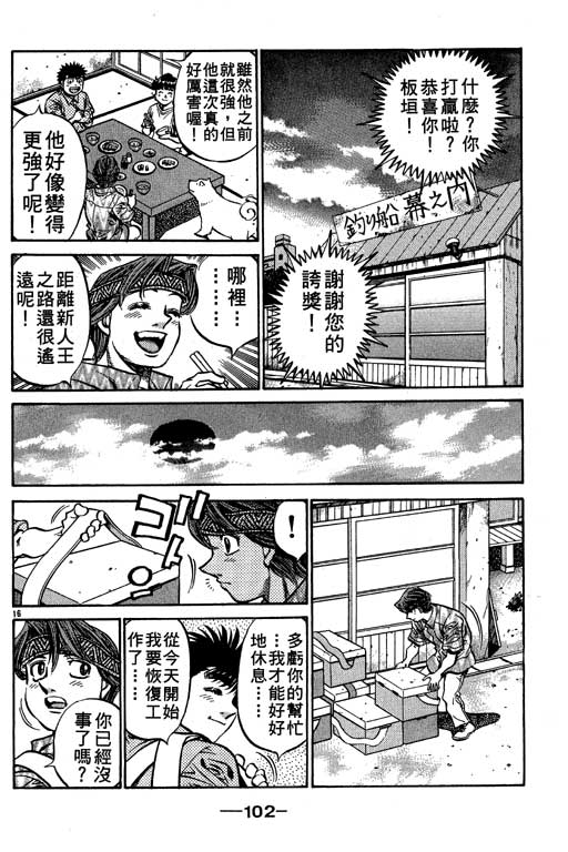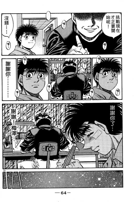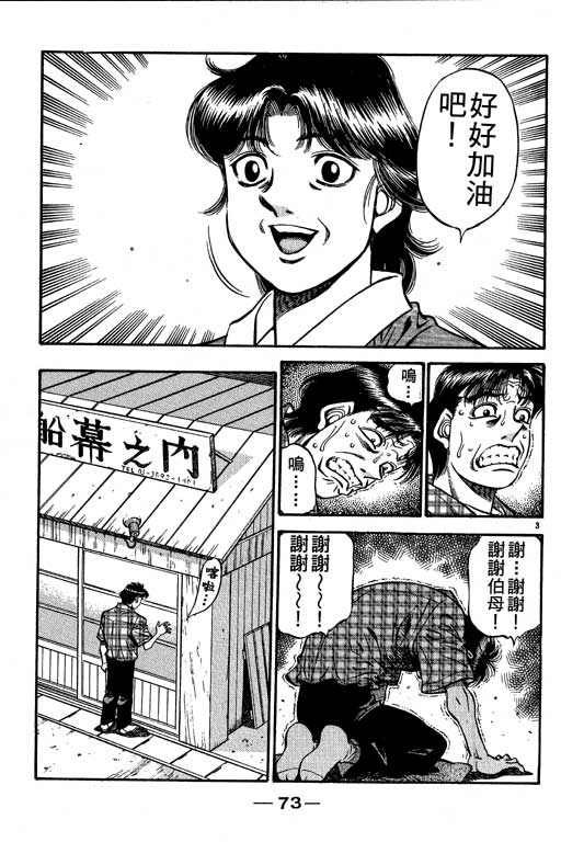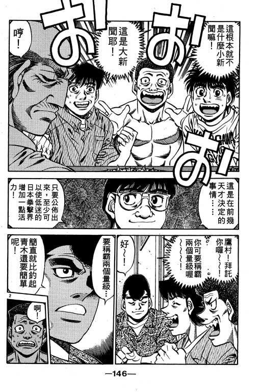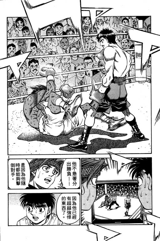 所谓的“强大”是怎么回事呢?我也想变强大!老是打不赢别人、被人欺负的高中生幕之内一步,跟拳手鹰村相遇后,体内潜伏的黄色炸药神拳终于被唤醒!幕之内一步懹抱著职业拳手的美梦,准备要向鸭川拳馆的入门测试挑战了! 之内一步与首位强敌宫田一郎再度决战的铃响起了!面对著宫田漂亮的步法,一步向胜利挑战!现在[]在要测试一下会长不眠不休、付出血汗调教的特训成果!连续猛击打倒宫中,摧毁那必杀的长拳攻击绝招! 终于,初次登场赛的日子来临,应战的敌手是小田裕介–擅打右钩拳的拳手,一步之周围的好友都认为他一定会胜利!但是到了擂台上,小田却有如脱胎换骨一般!超级激烈战斗始!一步能在初次登场赛中赢得胜利吗[-折叠]