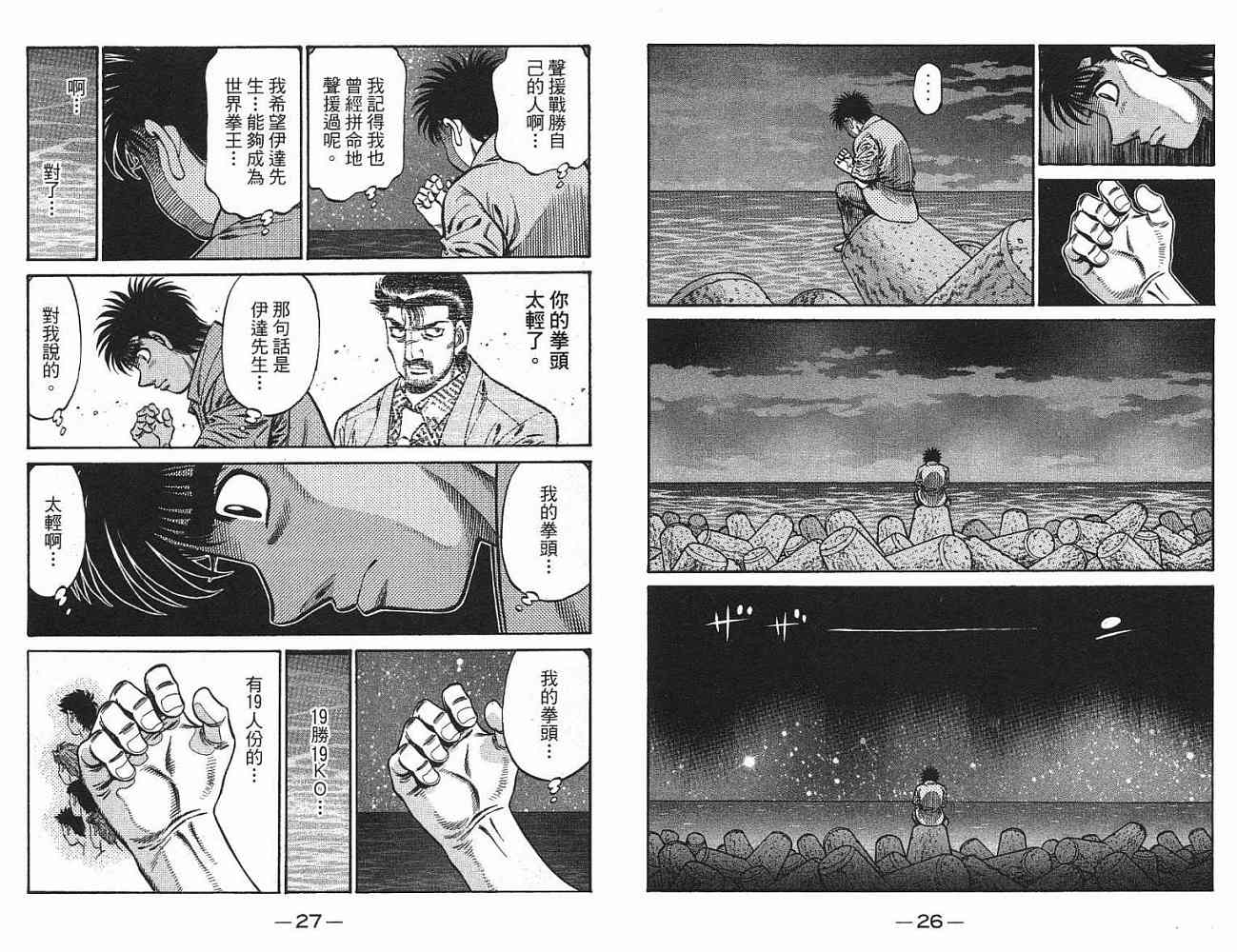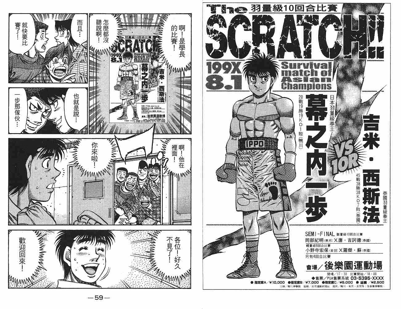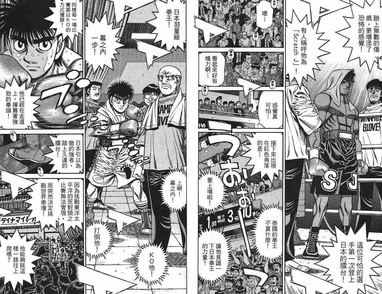 所谓的“强大”是怎么回事呢?我也想变强大!老是打不赢别人、被人欺负的高中生幕之内一步,跟拳手鹰村相遇后,体内潜伏的黄色炸药神拳终于被唤醒!幕之内一步懹抱著职业拳手的美梦,准备要向鸭川拳馆的入门测试挑战了! 之内一步与首位强敌宫田一郎再度决战的铃响起了!面对著宫田漂亮的步法,一步向胜利挑战!现在[]在要测试一下会长不眠不休、付出血汗调教的特训成果!连续猛击打倒宫中,摧毁那必杀的长拳攻击绝招! 终于,初次登场赛的日子来临,应战的敌手是小田裕介–擅打右钩拳的拳手,一步之周围的好友都认为他一定会胜利!但是到了擂台上,小田却有如脱胎换骨一般!超级激烈战斗始!一步能在初次登场赛中赢得胜利吗[-折叠]