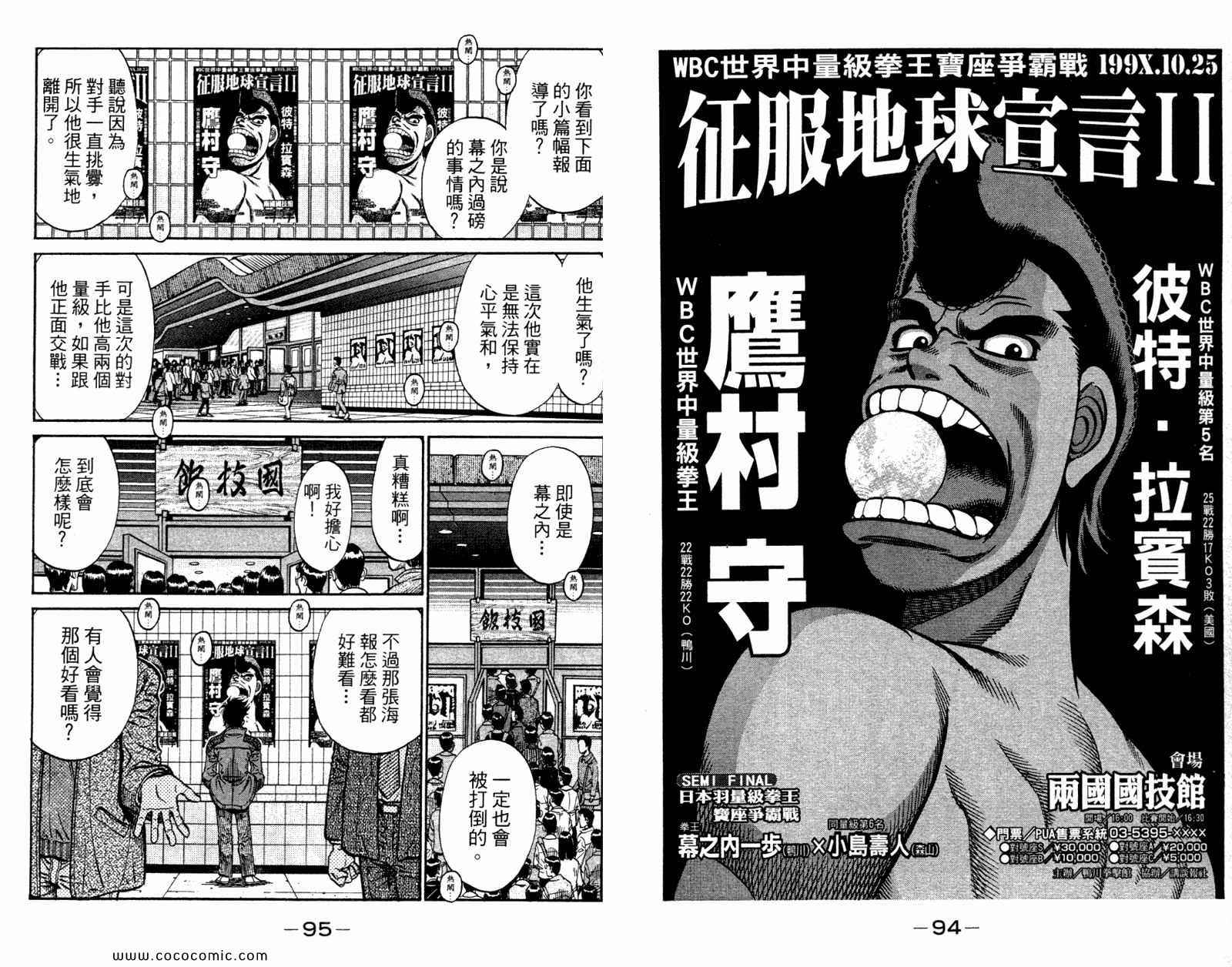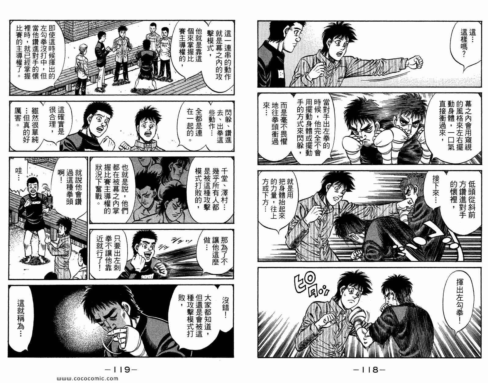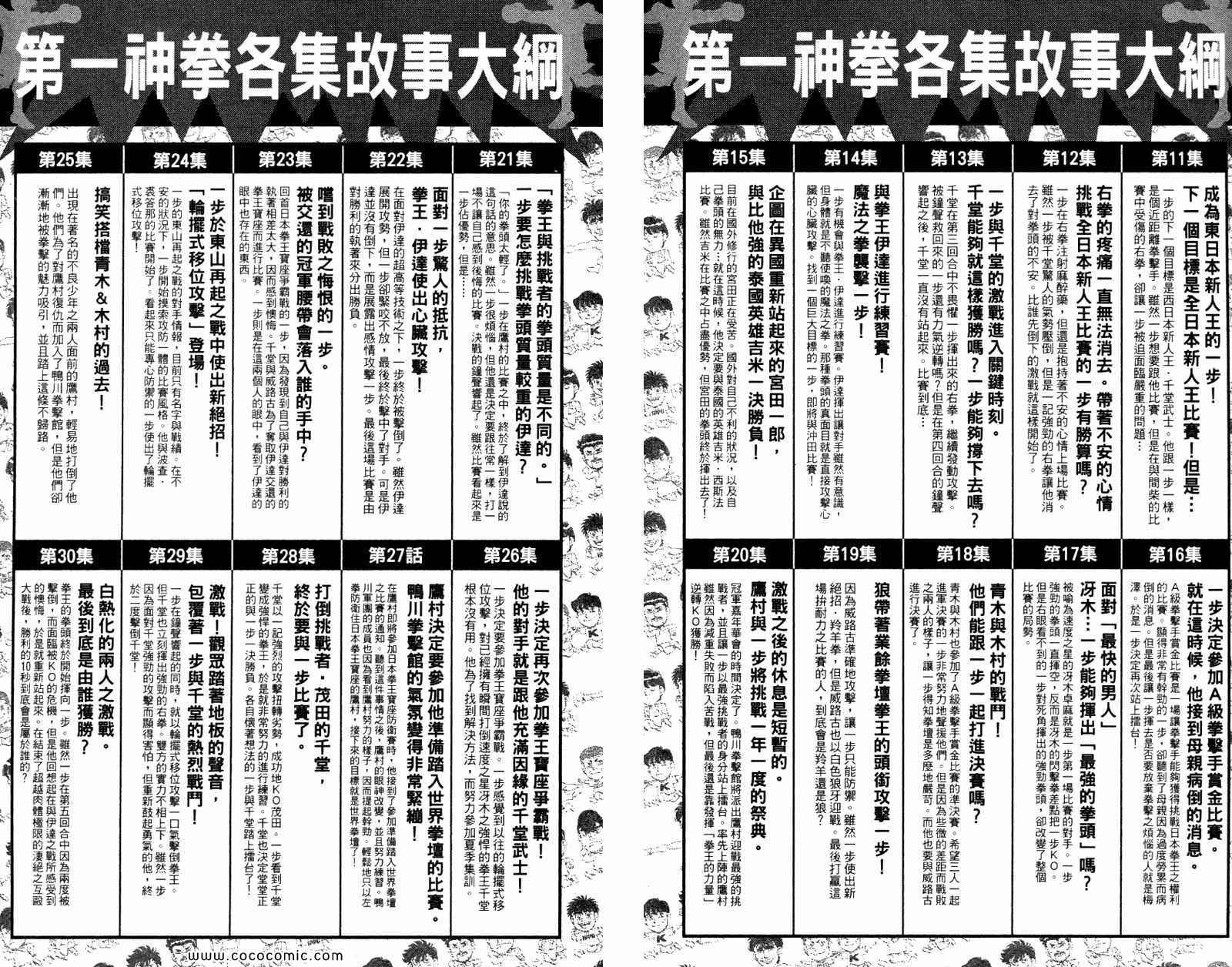 所谓的“强大”是怎么回事呢?我也想变强大!老是打不赢别人、被人欺负的高中生幕之内一步,跟拳手鹰村相遇后,体内潜伏的黄色炸药神拳终于被唤醒!幕之内一步懹抱著职业拳手的美梦,准备要向鸭川拳馆的入门测试挑战了! 之内一步与首位强敌宫田一郎再度决战的铃响起了!面对著宫田漂亮的步法,一步向胜利挑战!现在[]在要测试一下会长不眠不休、付出血汗调教的特训成果!连续猛击打倒宫中,摧毁那必杀的长拳攻击绝招! 终于,初次登场赛的日子来临,应战的敌手是小田裕介–擅打右钩拳的拳手,一步之周围的好友都认为他一定会胜利!但是到了擂台上,小田却有如脱胎换骨一般!超级激烈战斗始!一步能在初次登场赛中赢得胜利吗[-折叠]