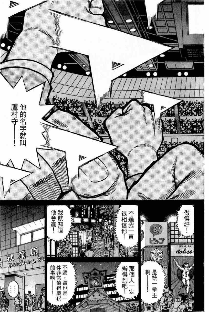 所谓的“强大”是怎么回事呢?我也想变强大!老是打不赢别人、被人欺负的高中生幕之内一步,跟拳手鹰村相遇后,体内潜伏的黄色炸药神拳终于被唤醒!幕之内一步懹抱著职业拳手的美梦,准备要向鸭川拳馆的入门测试挑战了! 之内一步与首位强敌宫田一郎再度决战的铃响起了!面对著宫田漂亮的步法,一步向胜利挑战!现在[]在要测试一下会长不眠不休、付出血汗调教的特训成果!连续猛击打倒宫中,摧毁那必杀的长拳攻击绝招! 终于,初次登场赛的日子来临,应战的敌手是小田裕介–擅打右钩拳的拳手,一步之周围的好友都认为他一定会胜利!但是到了擂台上,小田却有如脱胎换骨一般!超级激烈战斗始!一步能在初次登场赛中赢得胜利吗[-折叠]