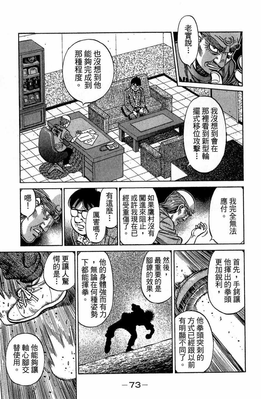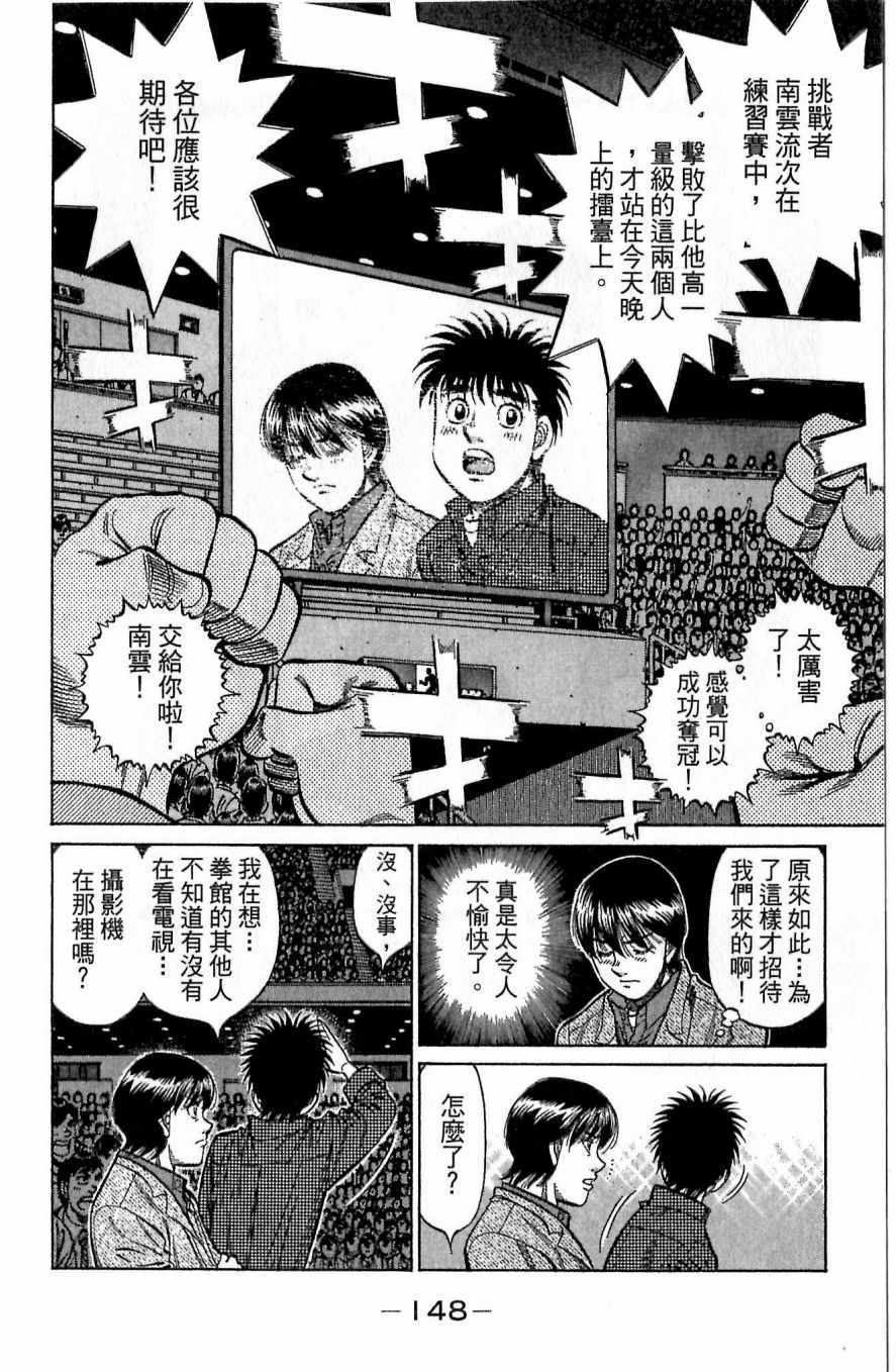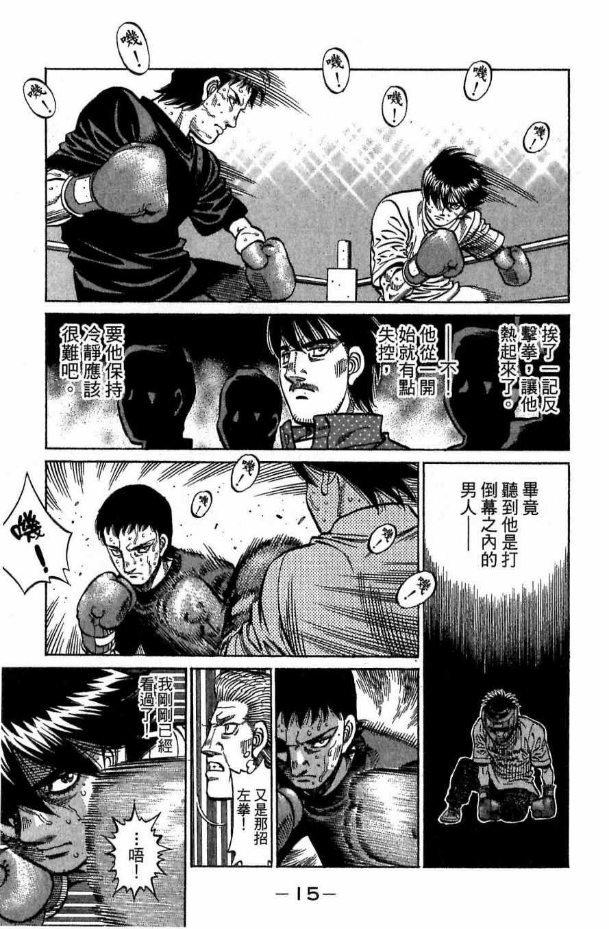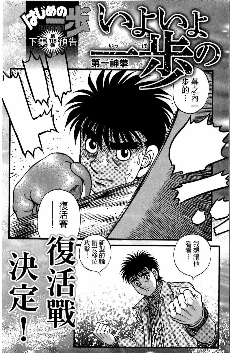 所谓的“强大”是怎么回事呢?我也想变强大!老是打不赢别人、被人欺负的高中生幕之内一步,跟拳手鹰村相遇后,体内潜伏的黄色炸药神拳终于被唤醒!幕之内一步懹抱著职业拳手的美梦,准备要向鸭川拳馆的入门测试挑战了! 之内一步与首位强敌宫田一郎再度决战的铃响起了!面对著宫田漂亮的步法,一步向胜利挑战!现在[]在要测试一下会长不眠不休、付出血汗调教的特训成果!连续猛击打倒宫中,摧毁那必杀的长拳攻击绝招! 终于,初次登场赛的日子来临,应战的敌手是小田裕介–擅打右钩拳的拳手,一步之周围的好友都认为他一定会胜利!但是到了擂台上,小田却有如脱胎换骨一般!超级激烈战斗始!一步能在初次登场赛中赢得胜利吗[-折叠]