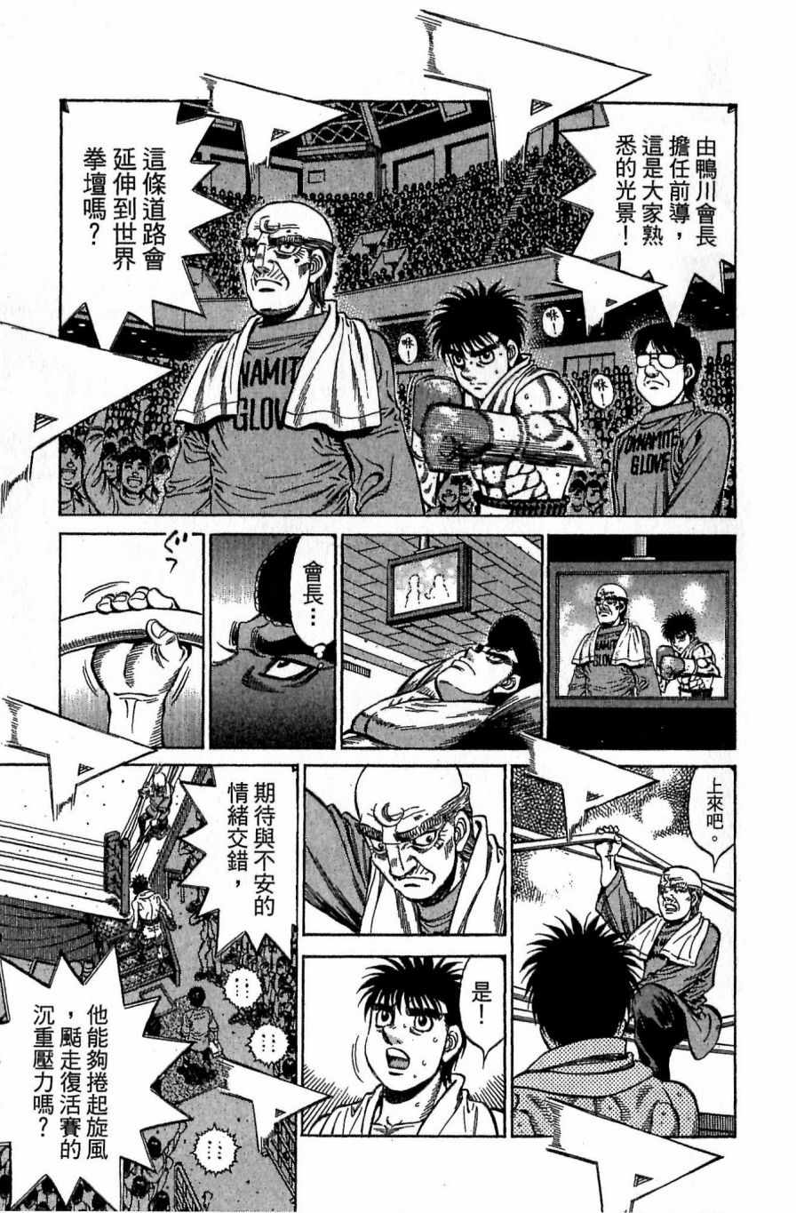 所谓的“强大”是怎么回事呢?我也想变强大!老是打不赢别人、被人欺负的高中生幕之内一步,跟拳手鹰村相遇后,体内潜伏的黄色炸药神拳终于被唤醒!幕之内一步懹抱著职业拳手的美梦,准备要向鸭川拳馆的入门测试挑战了! 之内一步与首位强敌宫田一郎再度决战的铃响起了!面对著宫田漂亮的步法,一步向胜利挑战!现在[]在要测试一下会长不眠不休、付出血汗调教的特训成果!连续猛击打倒宫中,摧毁那必杀的长拳攻击绝招! 终于,初次登场赛的日子来临,应战的敌手是小田裕介–擅打右钩拳的拳手,一步之周围的好友都认为他一定会胜利!但是到了擂台上,小田却有如脱胎换骨一般!超级激烈战斗始!一步能在初次登场赛中赢得胜利吗[-折叠]